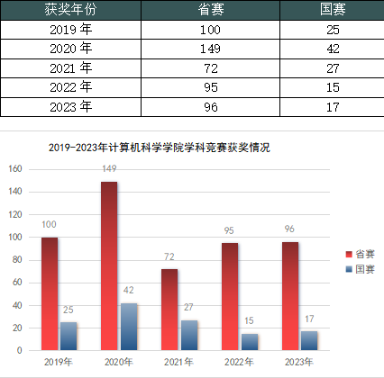学院始终秉持科研与教学并重的原则,致力于推动两者的有机结合,以科研成果反馈教学。近年来,学院积极指导学生参与各类科技创新活动和学科竞赛,组织学生参加中国大学生服务外包创新创业大赛、蓝桥杯全国软件和信息技术专业人才大赛、中国大学生计算机设计大赛、“互联网+”大学生创新创业大赛、大学生创新创业训练计划项目等多项国家级和省级比赛。依托专业引领与实践锻炼,进一步增强了本科生的创新精神和实践能力,提升了学生组织管理能力、人际交往能力和团队协作精神。学院高度重视学生的实践和创新活动,为他们提供了必要的支持和资源,确保学生能够满足毕业要求并取得卓越成果。在2021-2023年期间,学生共获得学科竞赛国家级奖项59项,省级奖项263项;大创项目国家级10项,省级19项。这些成绩充分展示了学院在教学质量方面的不断提升以及学生综合能力的显著增强,为专业的长远发展奠定了坚实的基础。