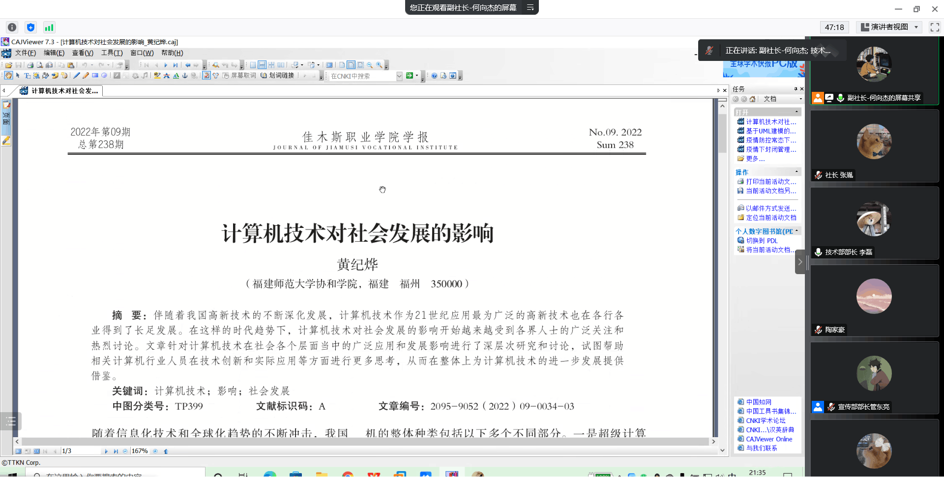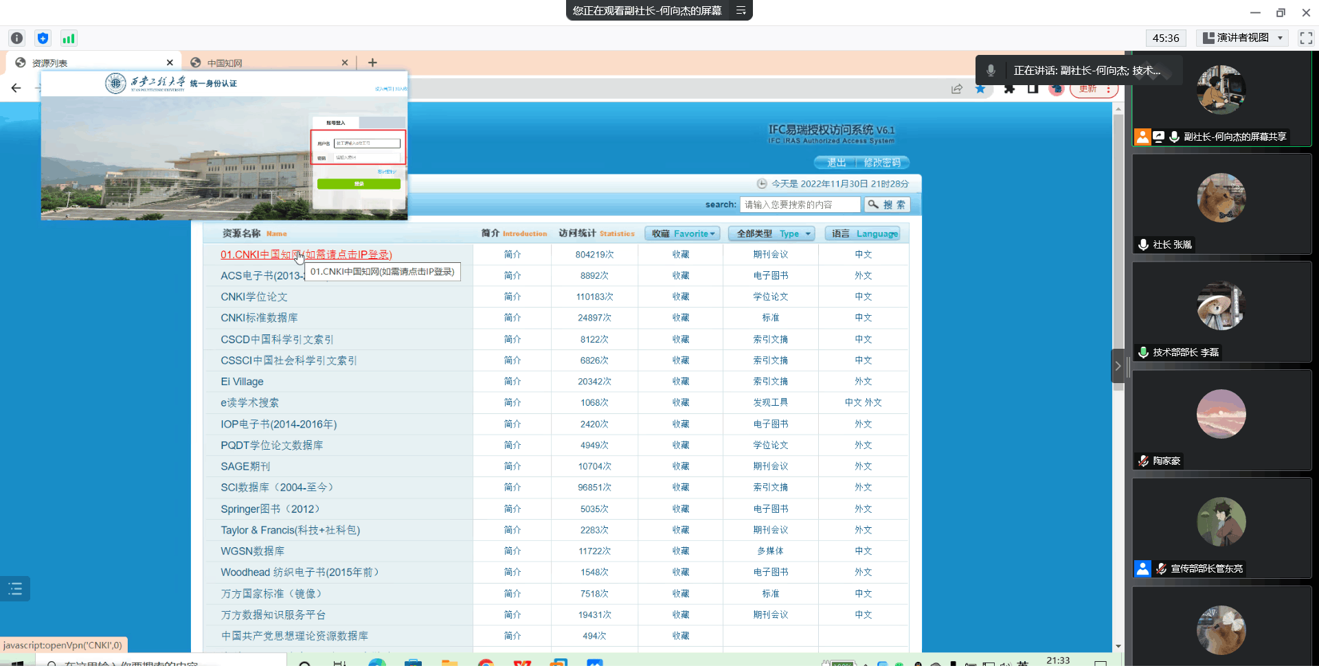 通过前一段时间的社团招新工作,西安工程大学best365官方网站登录入口计算机协会完成了新学年的招新活动。结合当下疫情现状和社员们的学习需求,协会于2022年11月23日在线上举办了“新生社员交流暨知网知识介绍会”。