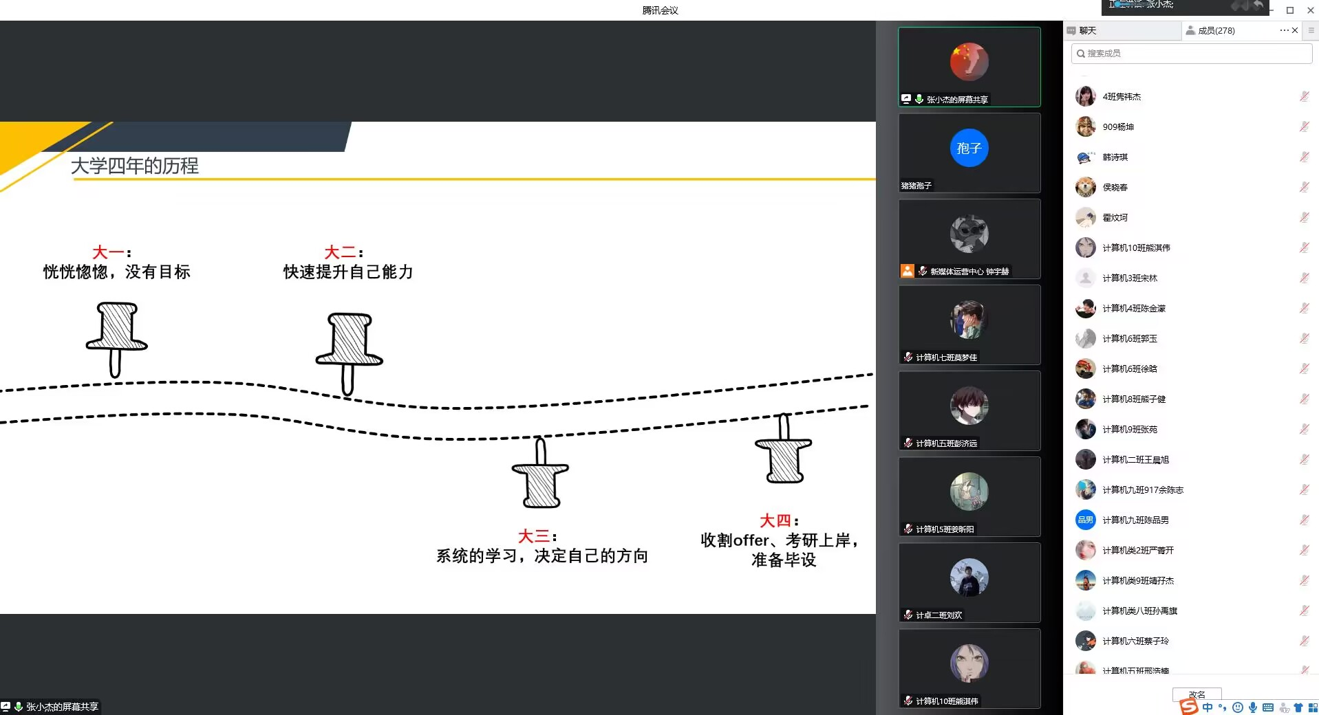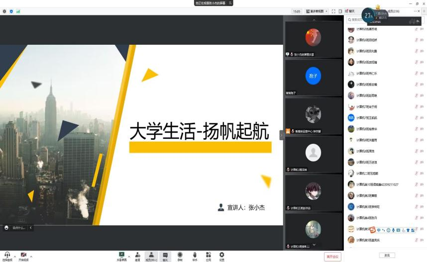 10月13日,计算机学院利用腾讯课堂平台,举行IT青年职业能力大提升系列活动之如何让自己的大学生活更充实,历届学长张小杰作为本次活动的主讲人,现就任于深信科技股份有限公司,2021级和2020级共400余名学生参加了本次线上讲座。