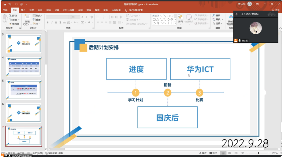 暑假结束后,我们在2022年9月28号召开线上暑期项目总结大会,大家对暑期开发的项目进行分享,讲述自己在开发项目是实际遇到的问题,以及各自项目的特点,使用到的技术,分享自己的收获。同学们根据自己的方向,在unity3d、字节跳动青训营、前端、后端、Android、大数据、微信小程序、Python、C++、网络安全、剪辑等等领域都有不小的收获。会后曾志权学长对大家暑期的学习做出总结,并介绍了致易工作室后期的工作安排。(撰稿:朱瑾 审核:赵勇进)
