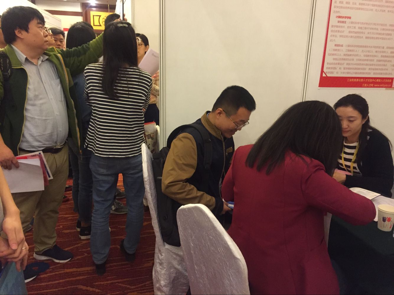 通过多措并举人才建设工程的不断深入开展,学院也在人才建设的征程上不断取得进步。近日,学院人才引进工作小组更是前往北京参加了由工信部人才交流中心主办的全国第十三届高层次人才洽谈会,在招聘会场,学院工作人员积极宣讲学校学院特色及人才政策,热情接待每一位应聘人员,先后接收涉及多个学科的博士应聘材料30余份,其中有意向的计算机科学与技术学科方向应聘者2位,学院也正在积极安排博士试讲等后续工作。