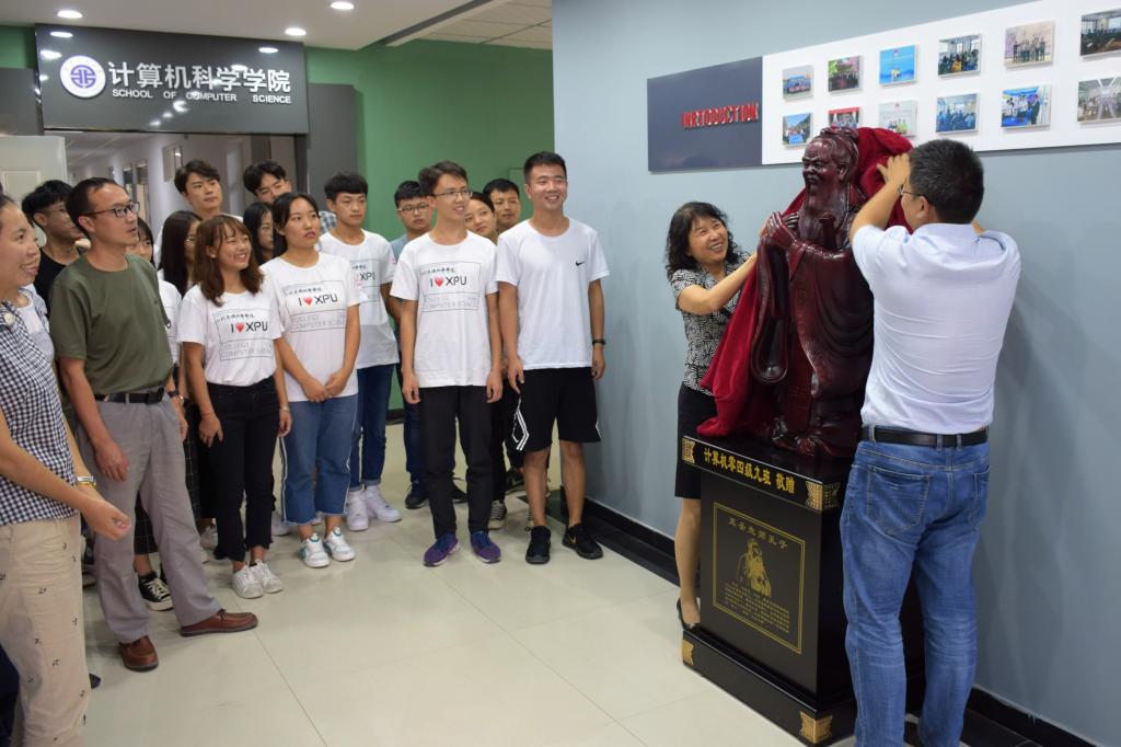 座谈会后,学院进行了校友捐赠孔子像的揭幕仪式。该孔子像由我院2008届计算机科学与技术9班毕业生所捐赠,作为从我院毕业10年的学生,他们正在各自岗位上创造着自己的价值、奉献着自己的青春,通过捐赠孔子像来表达自己感恩母校、感念师恩、祝福母校桃李满园的美好希冀。