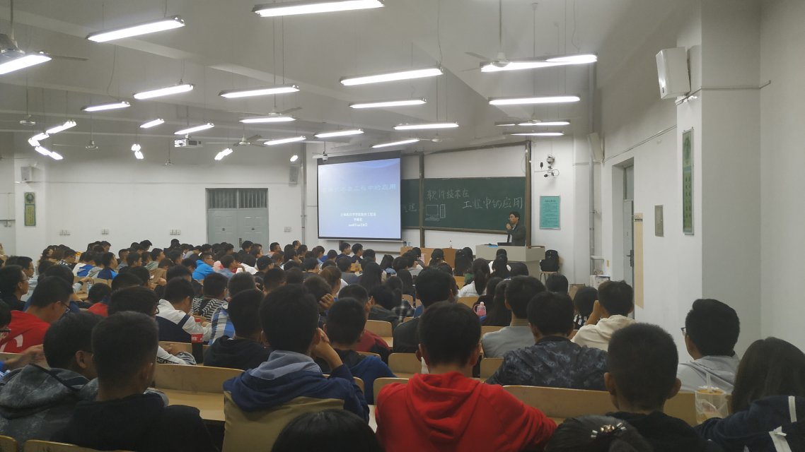李维乾以“软件技术在工程中的应用”为题展开论述,带着“什么是软件?”、“日常中的软件能干什么?”、“软件如何去开发?”等问题详细给同学们普及了软件工程技术专业的相关知识,并结合自身的课题及研究项目、参与开发的软件等加深同学们对软件技术的认知程度。
