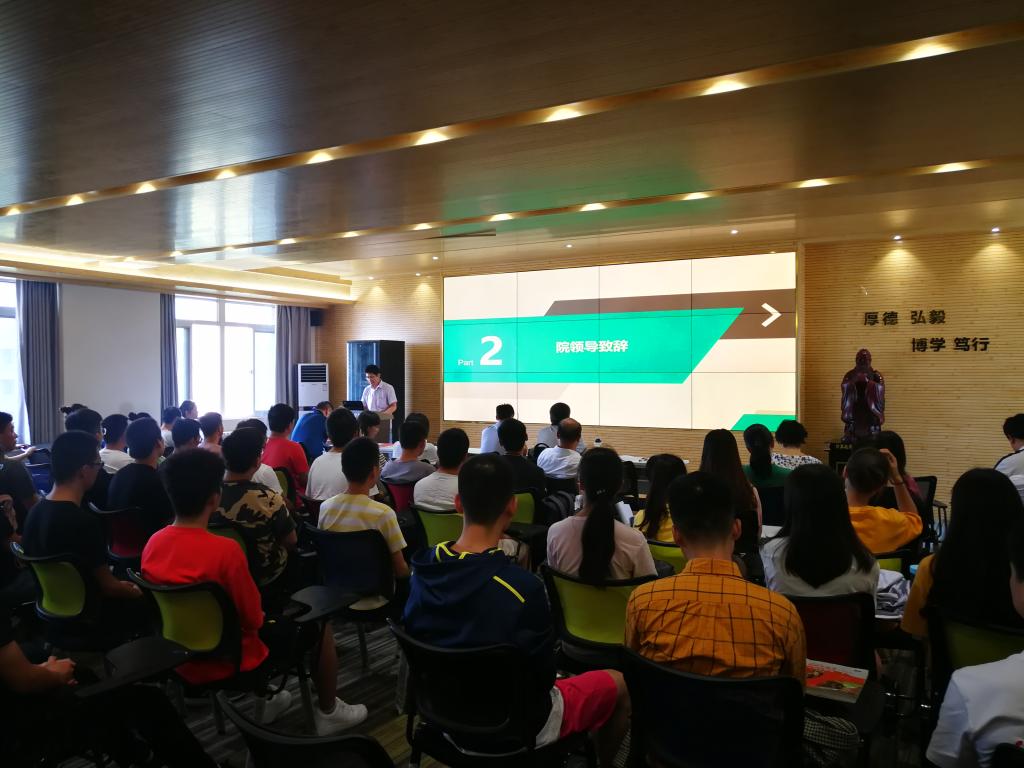 首先,陈金广代表学院向2019级研究生新生表示了热烈的欢迎,在讲解完研究生须遵守的各项规章制度后,他勉励同学们要多听取导师意见、多阅读学术文献、多参与学科竞赛,在接下来的研究生生涯中,积极养成深入思考的好习惯,扎实做好学问、不断实现新发展。