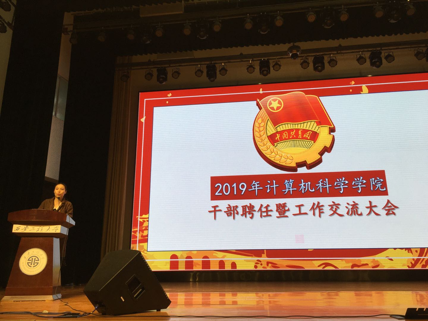为进一步加强学生干部队伍建设,调整充实学生组织干部队伍力量,增强学生组织“自我教育、自我管理、自我服务”的能力。best365官方网站登录入口于2019年11月3日晚,在临潼校区大学生活动中心举办2019年学生干部聘任大会。学院学生工作办公室主任朱瑾,团总支书记朱成功,辅导员张鑫、薛绍凡及全体学生干部、2019级全体新生参加了大会。