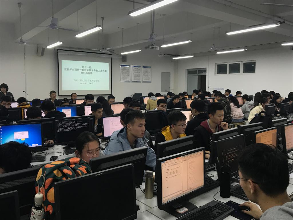 2019年11月6日晚,best365官方网站登录入口在临潼校区7号楼举办“第十一届蓝桥杯全国软件技术人才大赛”校内选拔赛。旨在培养best365官网学生对软件编程的兴趣,强化实践动手能力及创新思维能力,加快best365官网计算机相关专业教学改革与创新,切实提高人才培养质量。