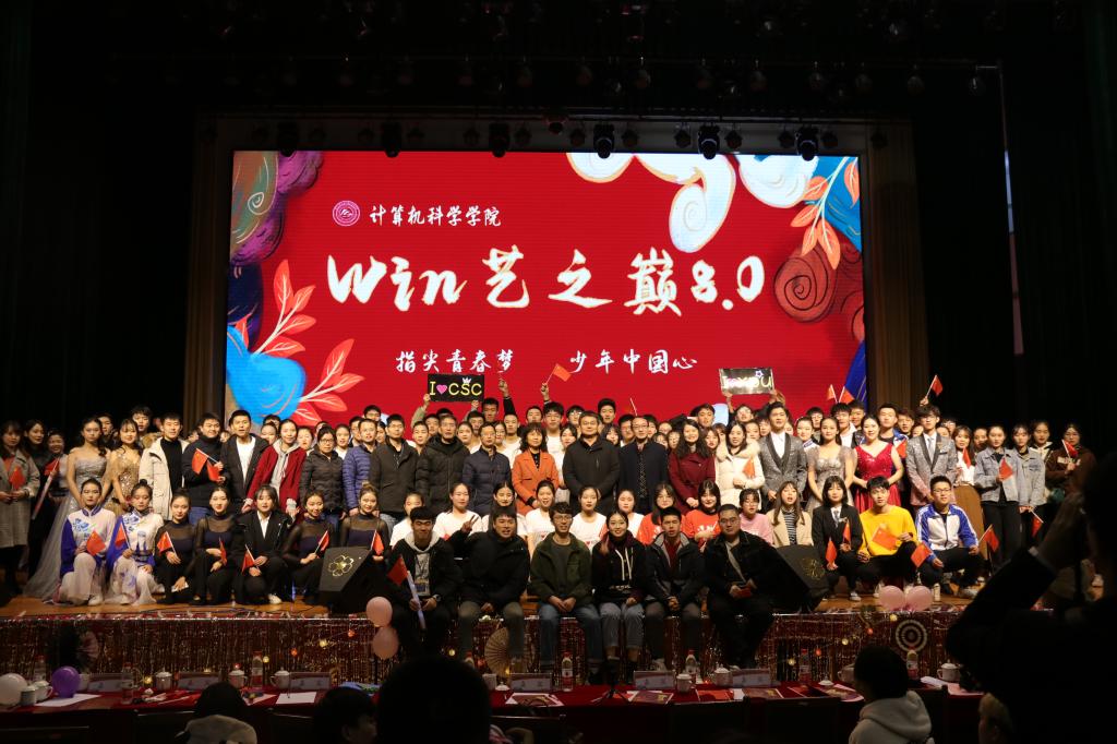 随后,精彩纷呈的win艺之巅8.0晚会在魔性的抖肩舞和洋溢青春气息《响扇》开场舞中拉开帷幕。文艺类节目有婉转曼妙的纱巾舞蹈《遇见》,悠扬婉转的对唱歌曲《失落沙洲》,还有成长中伴随喜怒哀乐的情景歌舞剧《一路成年》,歌唱青春的《你曾是少年》以及老师们带来的歌曲《想把我唱给你听》和《成都》等;语言类节目有严肃但又诙谐风趣的小品《计算机院最新闻》,令人捧腹的《满腹经纶》相声,回味纯真爱情的情景剧《等你下课》,阐释亲情的小品《爱未晚》和铿锵有力的朗诵《如愿》等。最后,在全场师生合唱的《我和我的祖国》的美妙歌声中,晚会落下了帷幕。