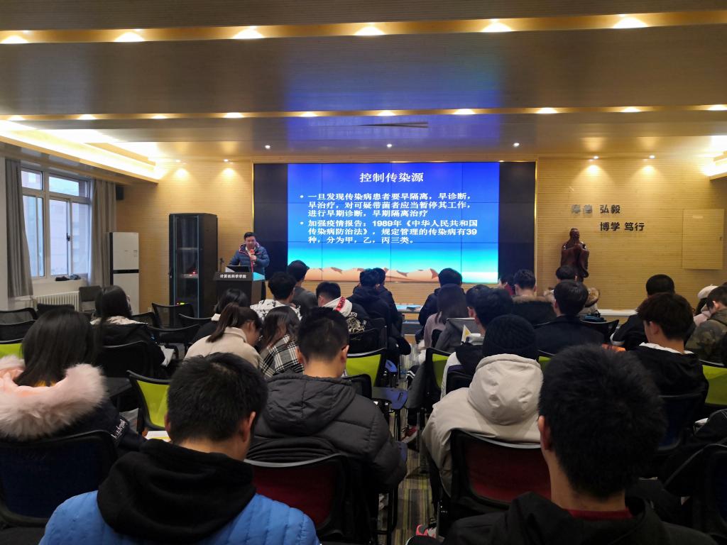 冬季是传染病高发的季节,为提高学生防范疾病意识和自我保健能力。近日,best365官方网站登录入口联合校医院举办了传染病预防知识讲座,重点对水痘、诺如病毒以及艾滋病等进行防控教育。计算机学院全体辅导员、学生干部参加了本次讲座。校医院杨军宏大夫为主讲人。