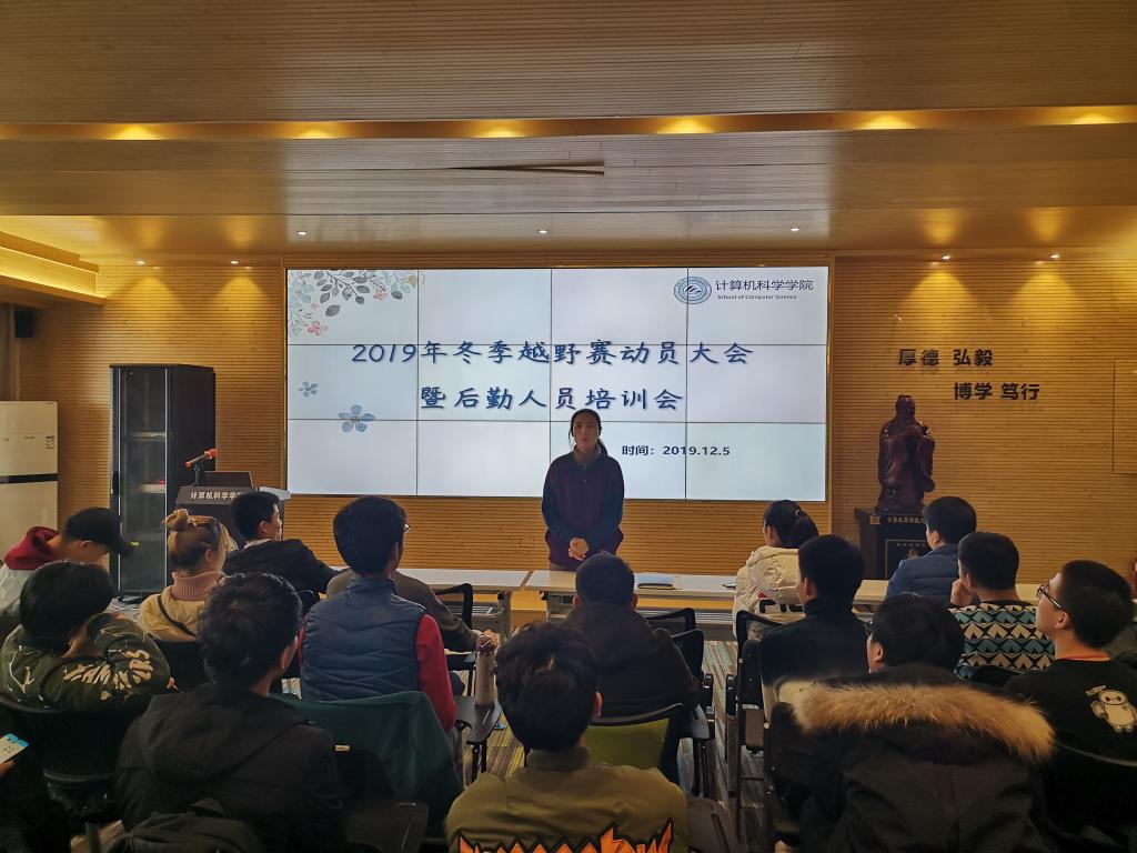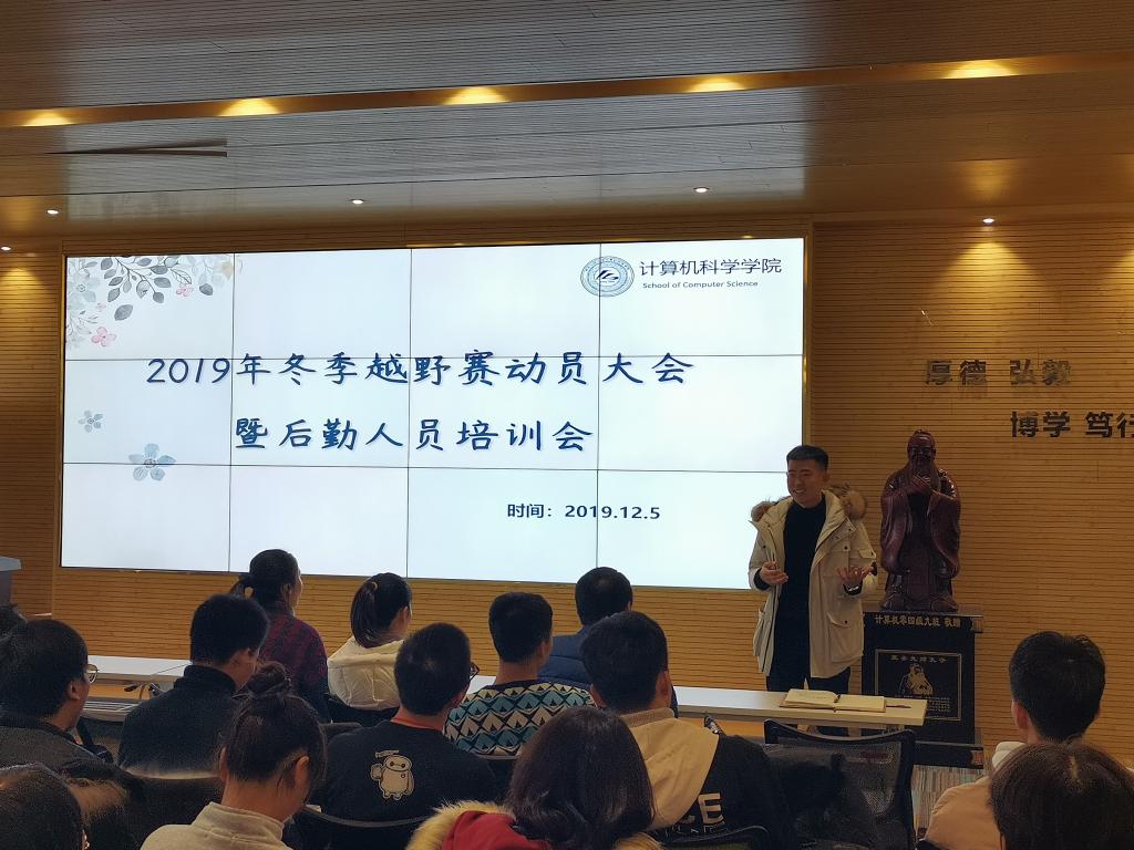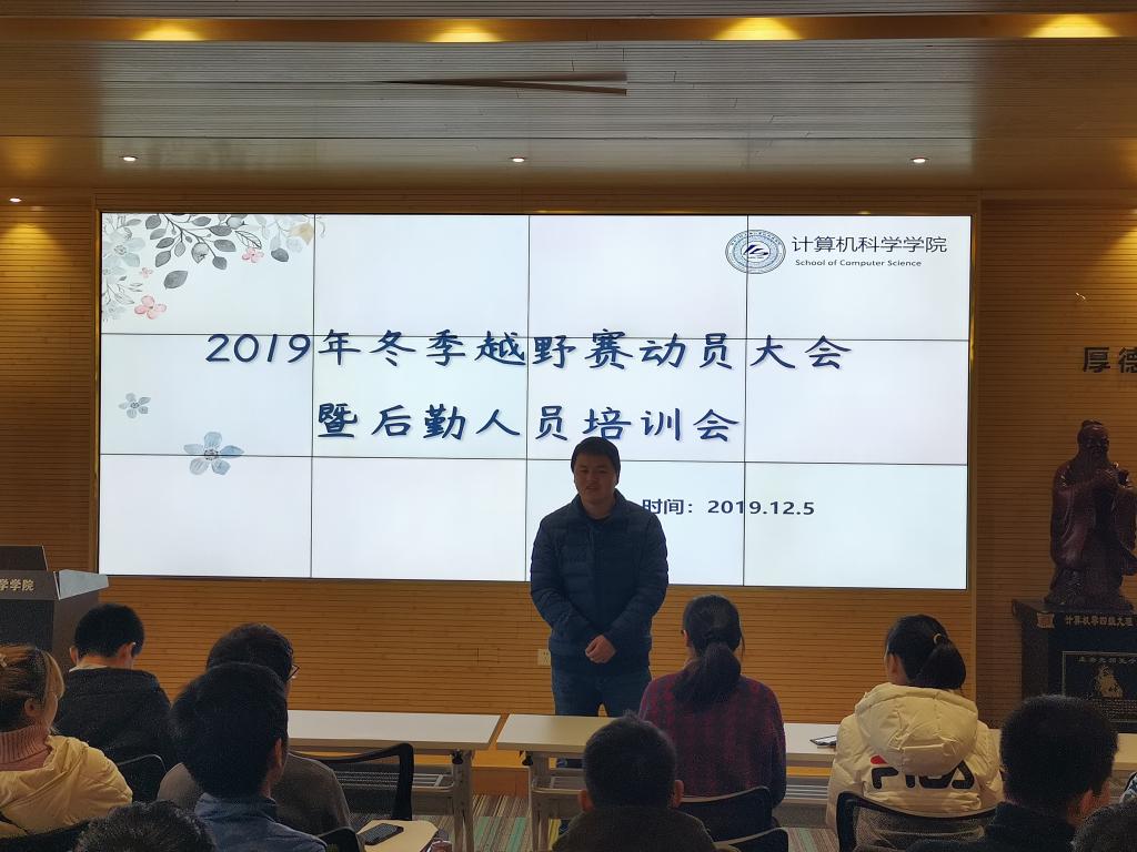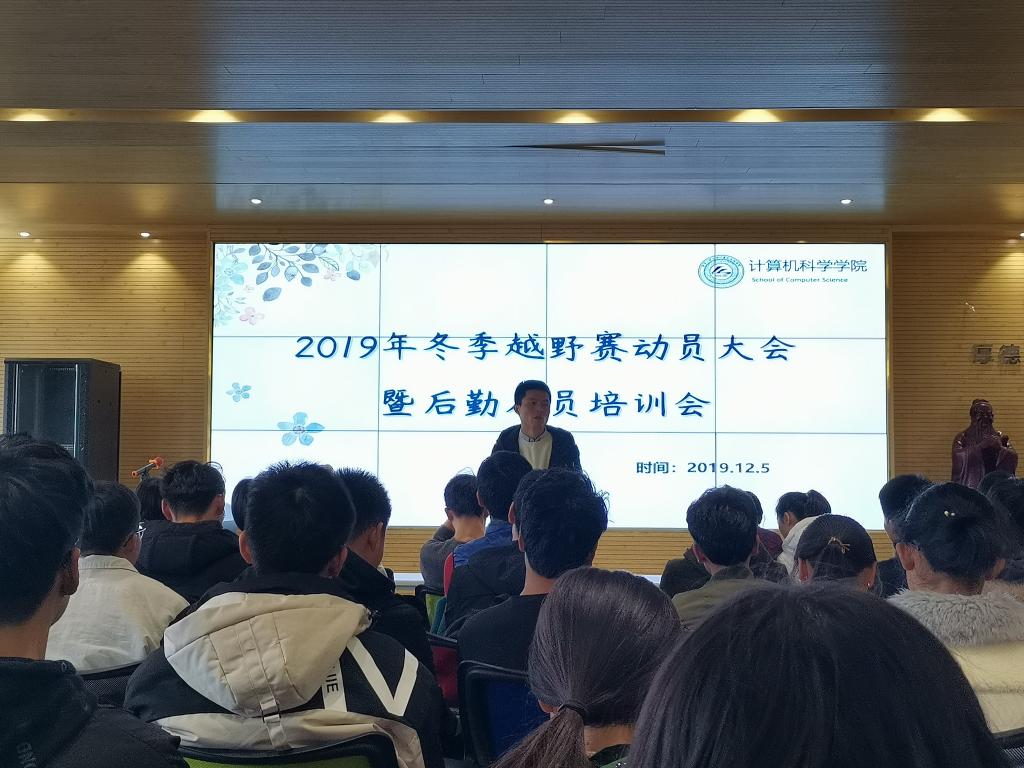 动员会上,辅导员朱成功首先从学院体育队成立的背景、历年来取得的成绩、历届优秀运动员的先进事迹、个人对越野赛的认知等方面和同学们进行了分享,鼓励大家坚持不懈、咬紧牙关,发扬计算机人坚韧不拔的品质,在保证人身安全的前提下努力冲刺,为学院的荣誉贡献自己的一份力量。