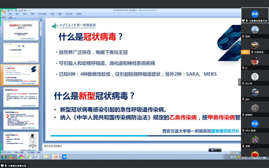 随后,王雅慧结合西安交通大学第一附属医院护理部副主任、西安交通大学第一附属医院国家援鄂医疗队成员李洁琼对best365官网的疫情防控培训的相关内容向全体教职工、党员进行了认真培训。同时,她带领全体教职工集中学习了《西安工程大学2020年工作要点》和《西安工程大学2020年教职工政治理论学习安排》并对学院本年度教职工政治理论学习工作做了相关安排。之后,对于学院稳定安全和疫情防控工作她还强调到:稳定安全无小事,疫情防控期间,全体教职工,特别是党员更发挥模范带头作用,保持清醒头脑,坚持底线思维,不能有侥幸心理和懈怠放松,在做好自我安全和防护的同时,也要积极为学院的安全稳定工作尽一份力,确保学院各项工作平稳有序开展。