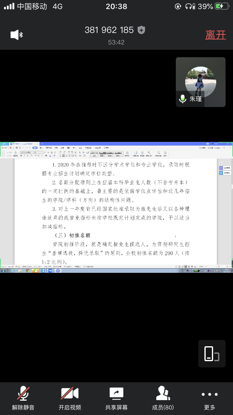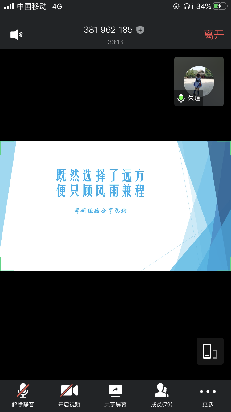 6月4日,best365官方网站登录入口召开考研经验分享交流会。邀请了学院2016级李硕彦、赵雨、韩欣悦3名考研“上岸”的同学为有考研意向的低年级同学进行经验分享。学院计算机系主任刘枫、辅导员朱瑾、张鑫及80多名同学参会,会议以腾讯会议的形式召开。