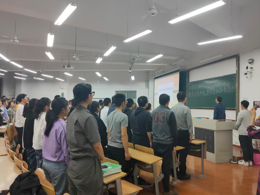 首先院长薛涛代表学院全体教职工对2020级新生的到来表示热烈欢迎,在简短介绍学院历史前沿、专业设置、师资队伍、教学科研、实践应用、学生考研就业等情况后,他勉励全体新生要完成高中到大学的转变,尽快适应大学生活,做好时间规划,四年大学时光要有所收获。最后他对全体新生提出了三点要求:一是学会学习,树立目标,制定规划,认真完成学业任务;二是要学会独立生活,实现自我管理,养成良好生活习惯;三是要学会做人做事,诚信为本,谨记校训,做当代合格大学生。