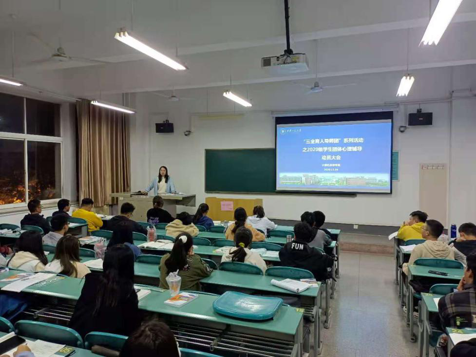 第二,团体心理辅导动员活动。11月6日晚,我院在C座教学楼2楼自习教室举行“三全育人导师团”系列活动之2020级学生团体心理辅导动员大会。辅导员左温慧介绍了团体心理辅导在促进同学间认识、促进班级团结的积极作用;并就团体心理辅导的活动形式进行举例说明。
