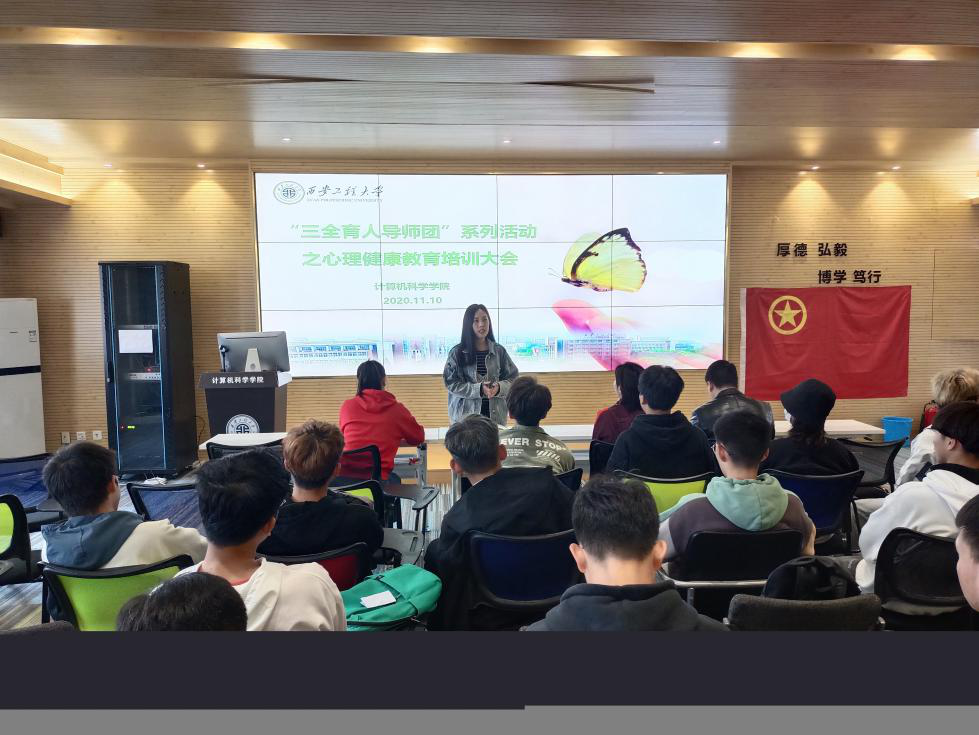 第三,心理健康教育培训活动。11月10日中午,我院在7号楼613举行心理健康教育培训活动,学院全体辅导员、2020级班团干部及心理委员参加。我院心理辅导员程帅重点强调:班团干部和心理委员作为班级心理健康教育的主要负责人,要时刻关注同学的心理状态,形成追踪机制;对发现有心理异常的同学要及时进行疏导,及时反馈;出现心理问题后,要尽可能给予支持和协助,及时向学校心理健康教育中心提交咨询预约申请,防患于未然。