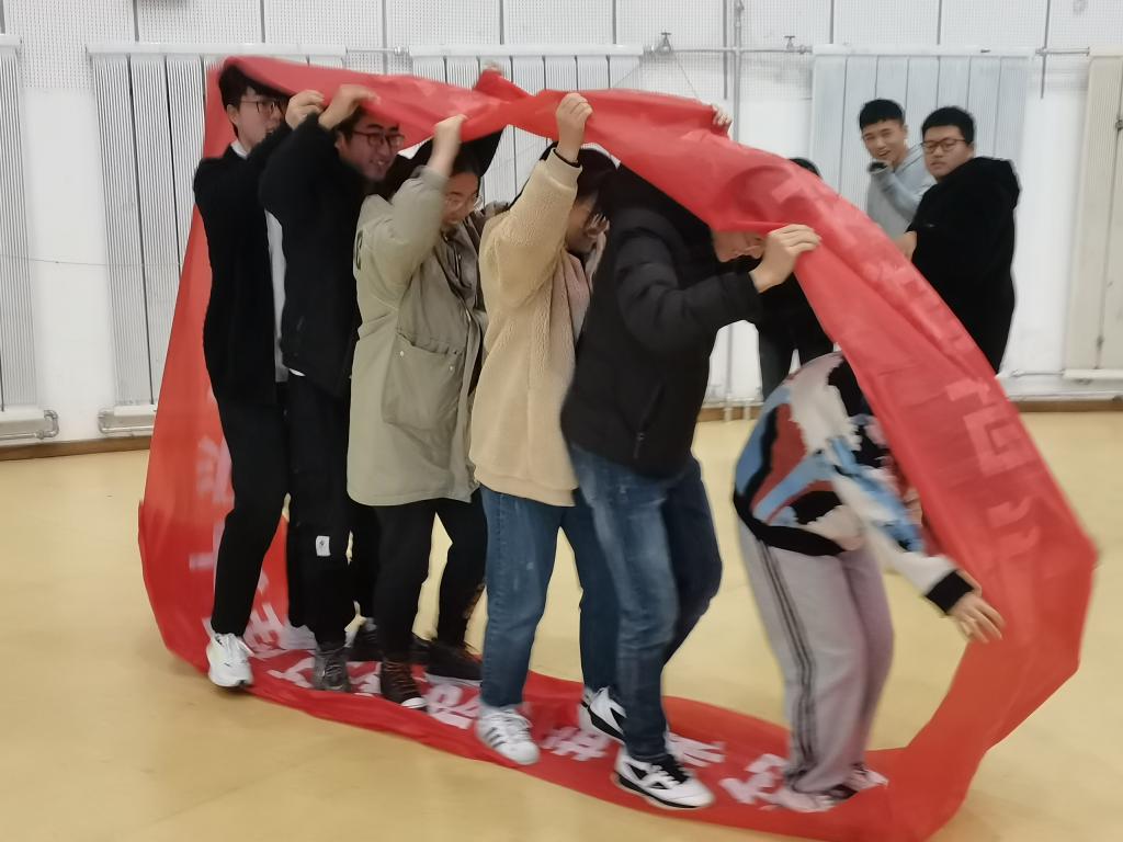运动会上,参赛队伍抽签决定随机分为5组,每组6人。趣味运动会包含五个项目,分别为“结队同行”、“快快跳起来”、“火车赛跑”、“穿针引线”和“勇往直前”,每一个项目的完成都离不开团队小组的配合,既充满趣味性,又具有了挑战性。