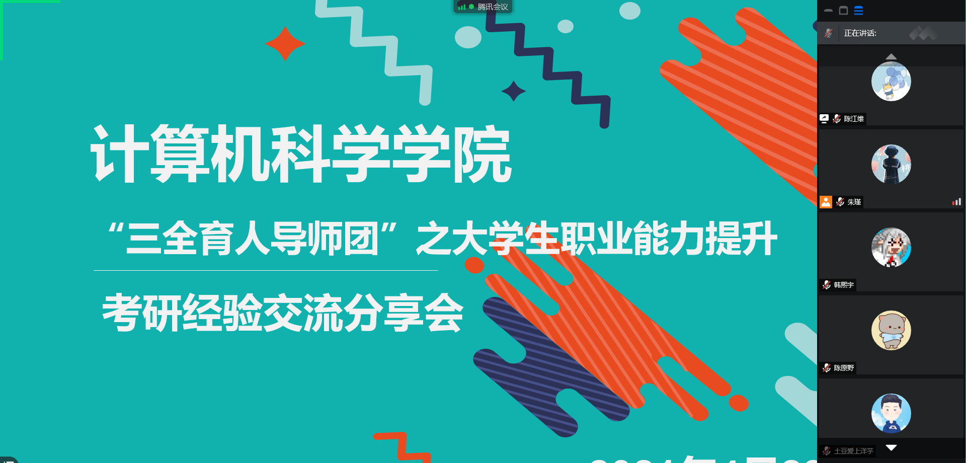 4月29日晚,best365官方网站登录入口组织召开了2021年考研经验线上交流会,旨在提高我院学生考研成功率。本次分享会邀请了2020届毕业生韩熙宇、陈原野、韩欣悦分享自己的成功的考研经验,并现场答疑解惑。全体辅导员参会,会议由朱瑾主持,共有120余名学生参加。
