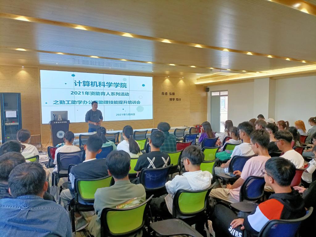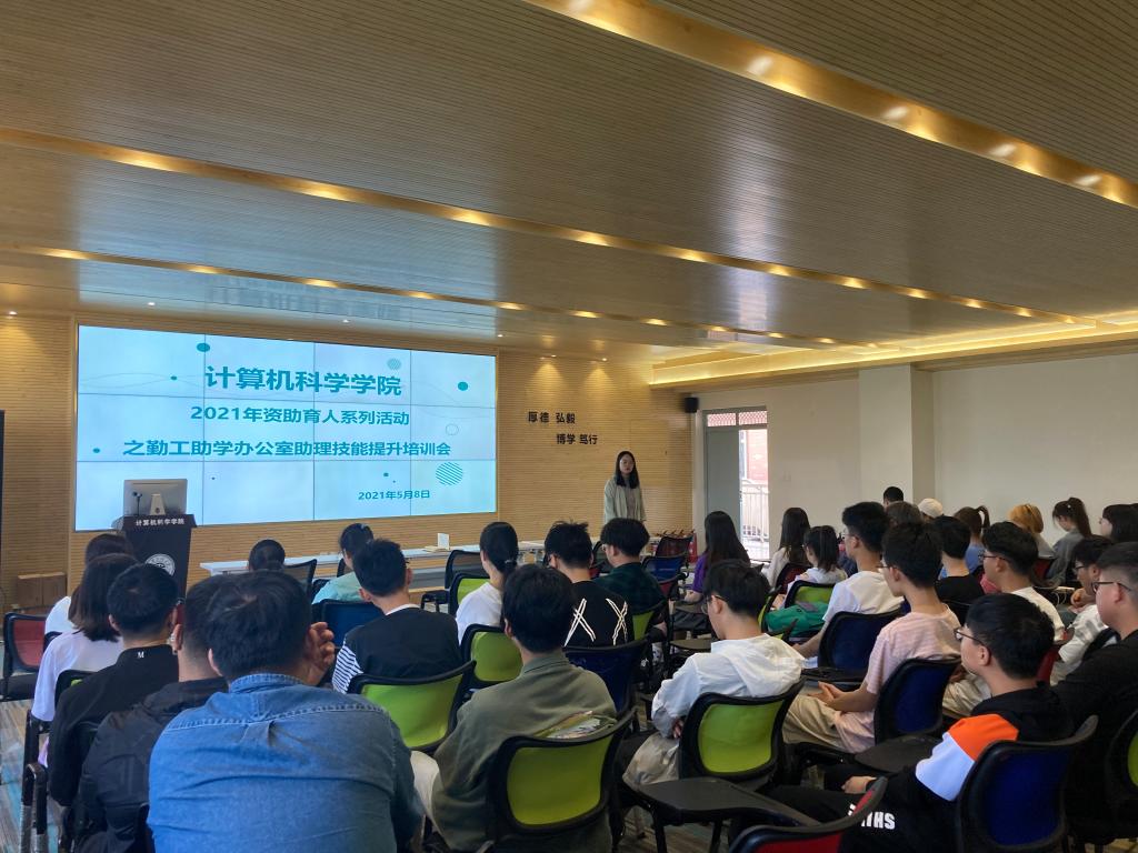 5月8日,best365官方网站登录入口在笃行楼614学术报告厅举办资助育人系列活动之勤工助学办公室助理技能提升培训会。学院学工办主任朱瑾、团总支书记薛绍凡、学生资助专项辅导员张鑫、2020级辅导员左温慧及全体勤工助学办公室助理50余人参会。