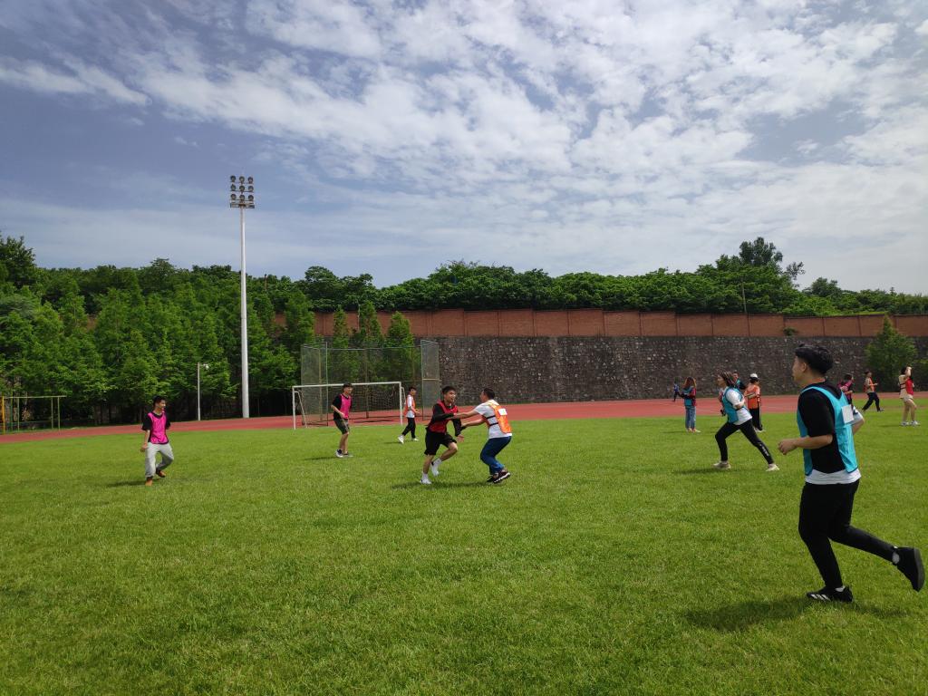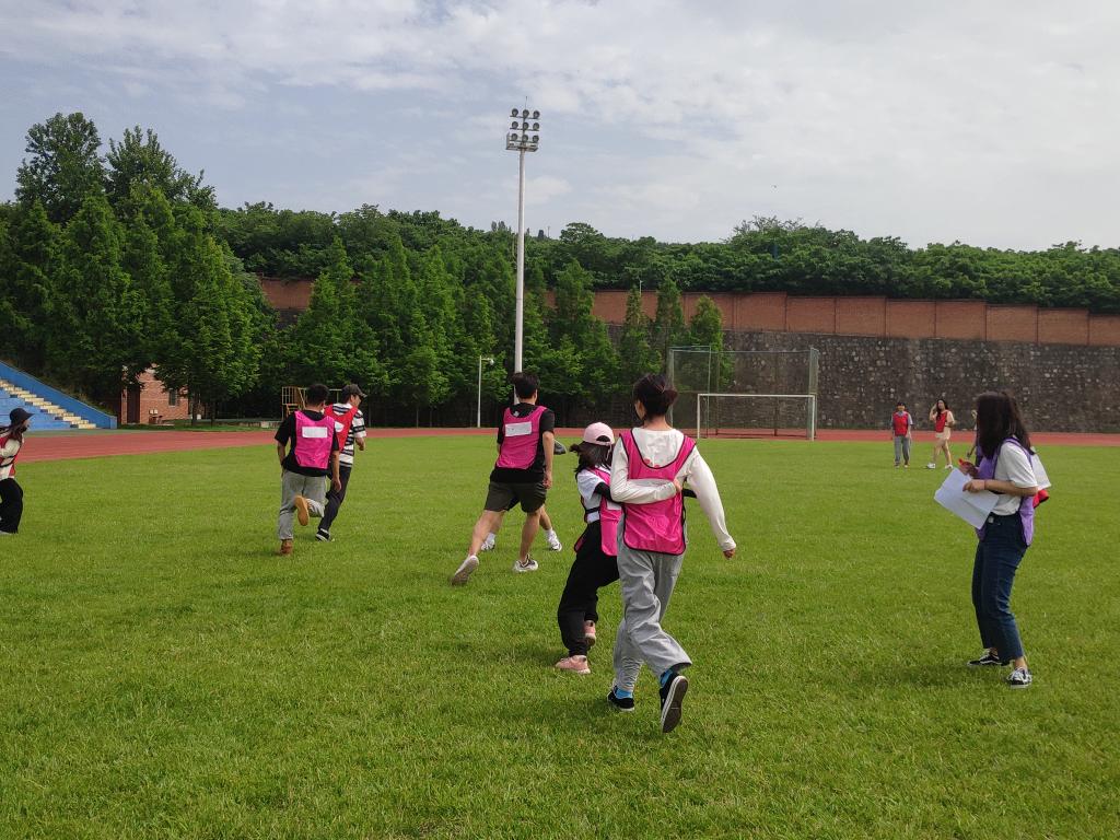 随后,身着不同颜色队服的六支队伍陆续进入场地,成为操场上一道亮丽的风景线。在一声哨响中比赛正式开始,六支队伍都在盘旋摸索,在保护队友的同时,也在敏锐地寻找时机进攻对手,选手们相互配合、伺机而动。各支队伍发挥各自的优势,采取不同的战术,在紧张的追逐中,不断有人被淘汰。随着时间的推移,“缩圈”游戏机制使场地逐渐缩小,将活动推向高潮,战况也愈发激烈。最终在裁判的哨声中比赛结束,第四组凭借强大的个人实力以绝对的优势摘得桂冠。