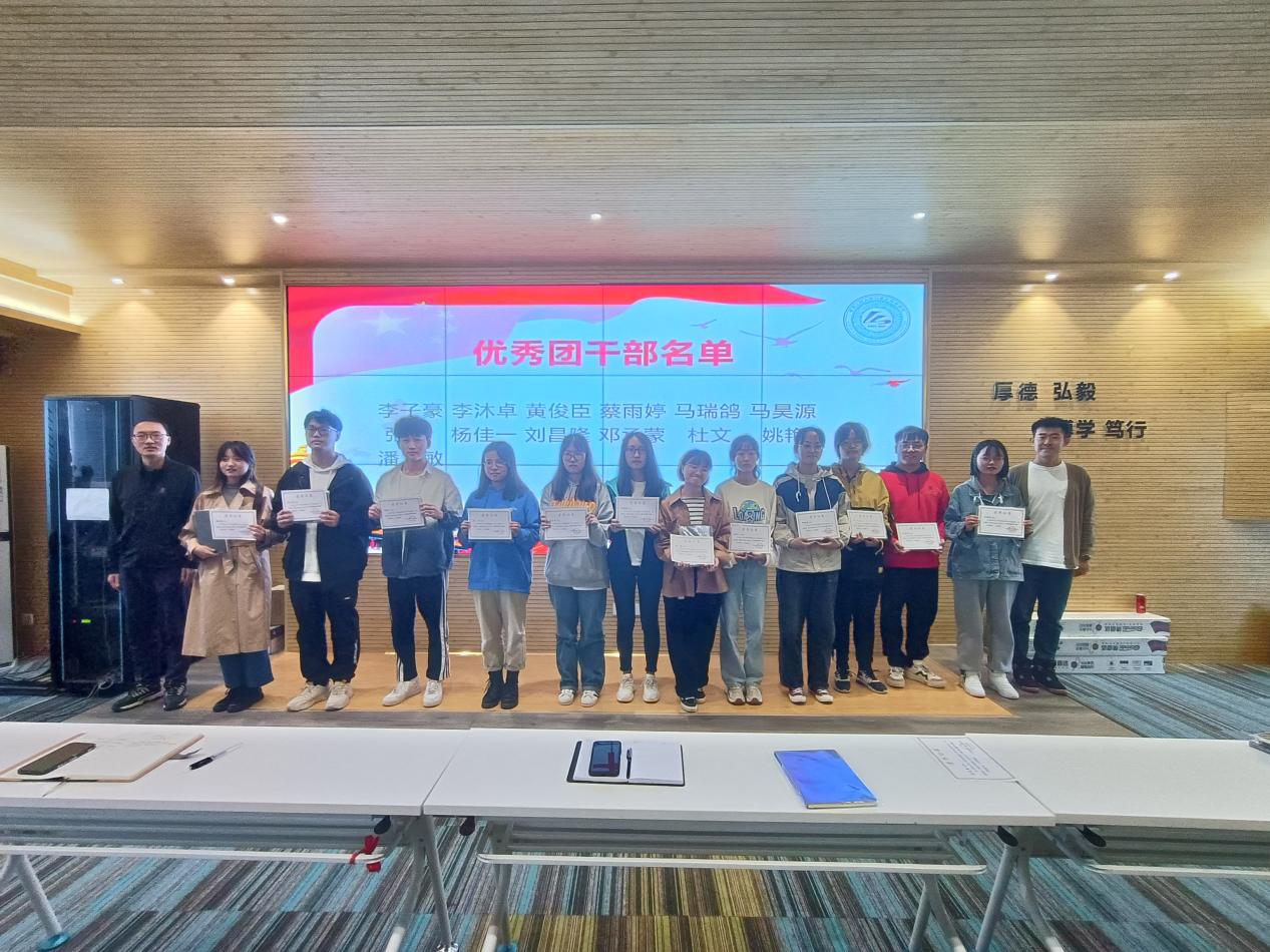 随后各位老师分别为中国青年五四奖章获得者、优秀团员、优秀团干等学生代表颁发荣誉证书,并进行合影留念。会后,薛绍凡老师发言,代表学院团总支向一年来为学院辛勤工作、无私奉献的广大团学干部表示由衷的感谢,希望他们在今后能更好发挥模范带头作用,以更加生动的姿态书写人生的篇章。
