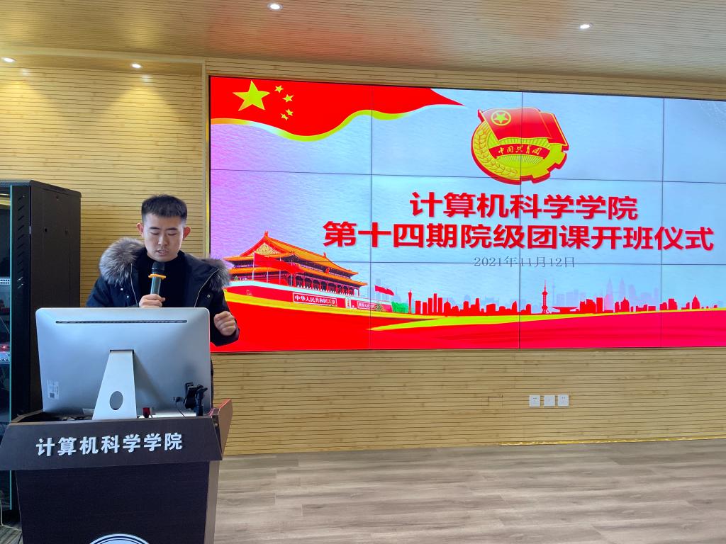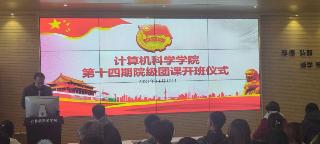 11月12日中午于笃行楼楼614举办了第十四期院级团课开班仪式。党委副书记周波、学工部主任朱瑾、团总支书记薛绍凡、18级辅导员朱成功、21级辅导员张鑫出席了本次活动。学院党委副书记周波致开班辞,他对本次团课主题作出了详细讲解,要求共青团员团干应当向党组织看齐,共青团员要不断求知、不断进步、不断学习,政治坚定、学习刻苦、作风扎实、品德高尚,做党的得力助手和后备军;强调了共青团干部应该以更高标准严格要求自己,起到模范作用,同时要把握机会,把干部工作视为锻炼自己的好机会,有效提升自身综合素质与能力,自觉维护共青团的荣誉,积极传播青春正能量。随后,薛绍凡老师上台宣读了本次团课学习安排和学习纪律,本次团课将采取集上授课方式,理论学习,为期一周。同时,也希望团员们能珍惜本次参加团课学习的机会,认真学习团的知识,树立远大理想,以全新的风貌投入到各个团支部、班集体的工作。