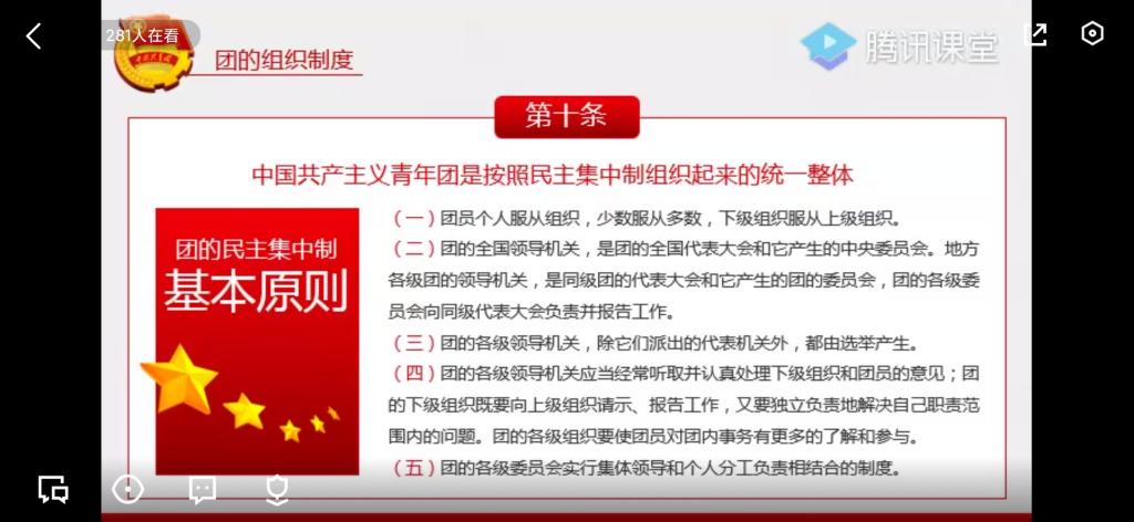 11月15日,朱成功老师为同学们开展了以《共青团的历史及基础团务知识》为主题的线上团课,使当代大学生明确自己的政治使命和职责,对共青团有进一步的了解和认识。