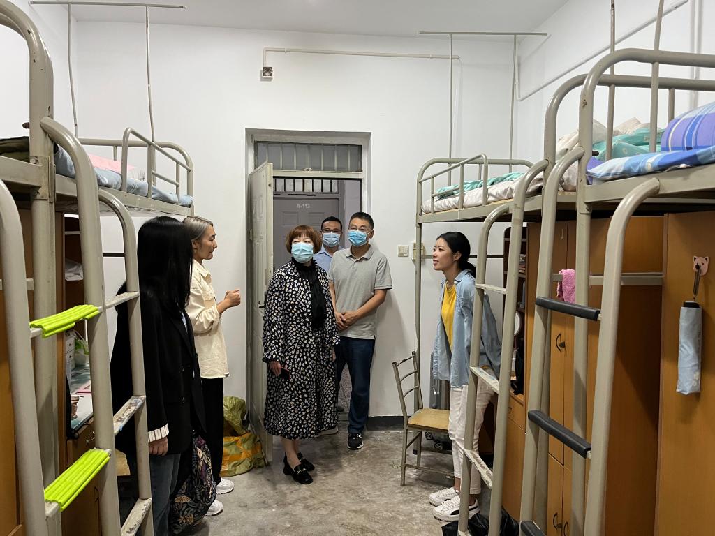 在走访过程中,学院领导班子向同学们表达了学院的问候与关怀,并与研究生新生亲切交谈,详细询问了大家入校后的住宿、用餐、环境适应、宿舍生活等情况,强调了宿舍卫生、用电安全等注意事项;了解新生入学后遇到的困难和生活需求,鼓励大家用积极乐观的心态融入新的校园生活,以崭新饱满的姿态迎接新的自己的研究生旅程。交谈过程中,赵雪曼书记希望同学们能珍惜研究生时光,在学习中努力科研,提高学术能力;在生活中要注意锻炼,科研的同时也要注意身体健康;在生活中学会理解、互相关心、彼此尊重、开放包容,收获属于自己的研究生生活。