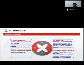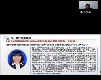 最后,在互相交流环节,参会教师各抒己见,为学院申报国家自然科学基金工作方面提出了很多宝贵的建议和意见。张凯兵副院长作总结发言:他表示学院将在2023年度的基金工作中全心全意为广大教师做好服务,希望老师们密切配合学院的基金申报工作,充分发挥自身优势和团队的力量,为我院在2023年度国家自然基金项目立项上取得新的突破共同努力。(撰稿:贺姗  审核:张凯兵)