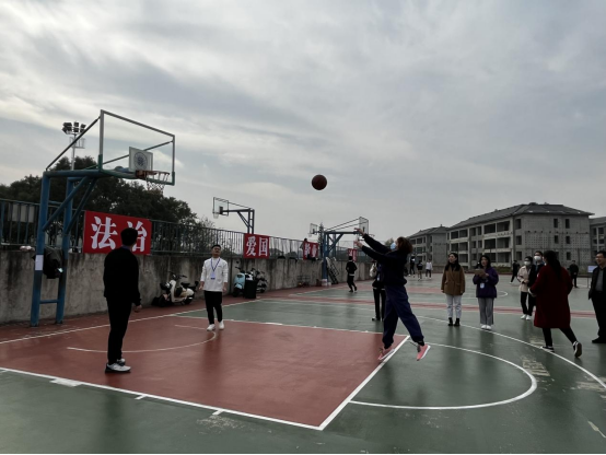 教工定点投篮赛要求参赛者站在罚球线的位置,统计一分钟之内投中篮筐的次数。教师们在篮球场上展示了矫健的身姿和精准的投篮技术,呈现出别样的风采。