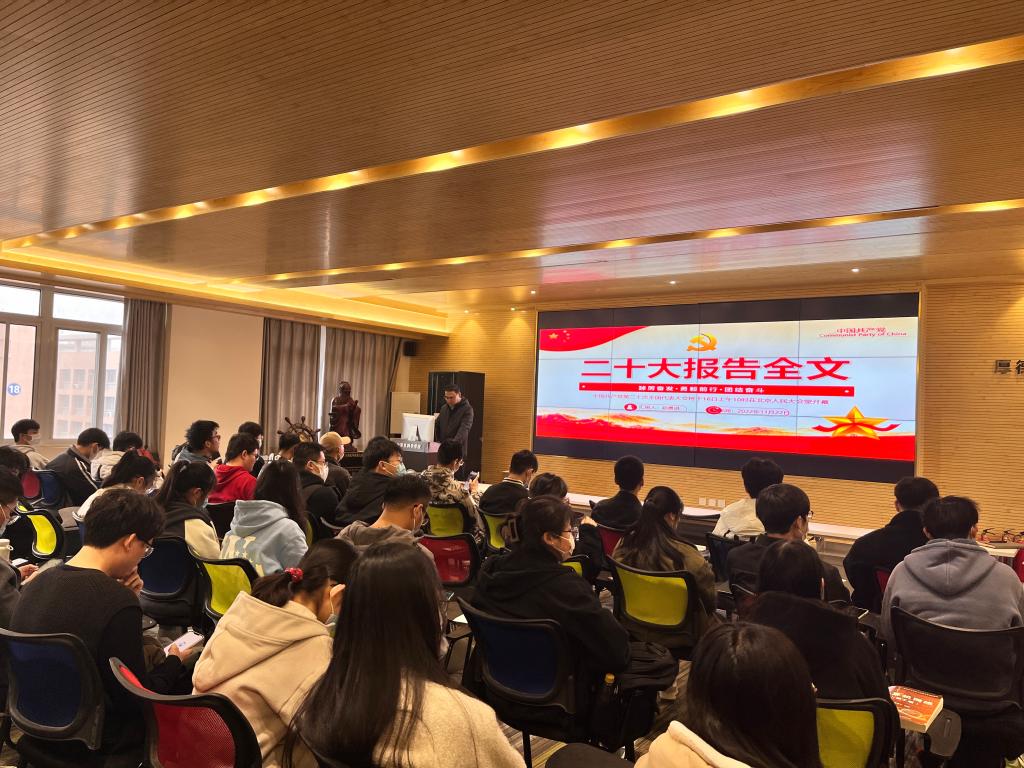盛会聚人心,砥砺谱新篇。为深入学习宣传贯彻党的二十大精神,积极响应学校党委号召,切实引导全院师生员工将思想和行动统一到党中央的决策部署上来,best365官方网站登录入口通过收看直播、集体学习、专题会议、主题活动、研讨交流、宣讲报告、体会分享等多种形式,按照以上率下学、区分层次学、突出重点学的方式,在学院迅速掀起学习党的二十大精神热潮,持续在全面学习、全面把握、全面落实上下功夫,全力推动党的二十大精神入脑入心、落地生根。