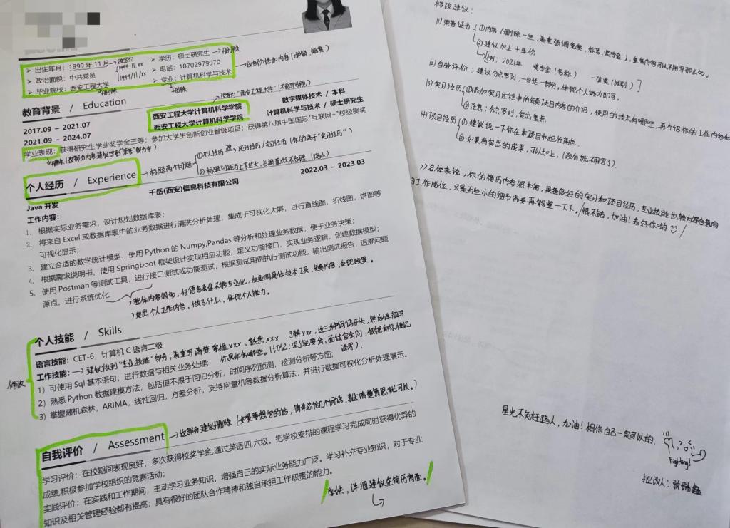 活动结束后,评阅后的简历逐一反馈给了相关同学。2024届的学生收到精心修改的简历后非常受启发。同学们纷纷表示“感谢老师和学长学姐们对我们简历的评阅,他们提出的修改意见对于我们提高简历质量会有很大的帮助。通过‘简历护航’活动,也让我们在即将到来的求职季充满信心。希望我们所有人都可以收获心仪的录用通知”。