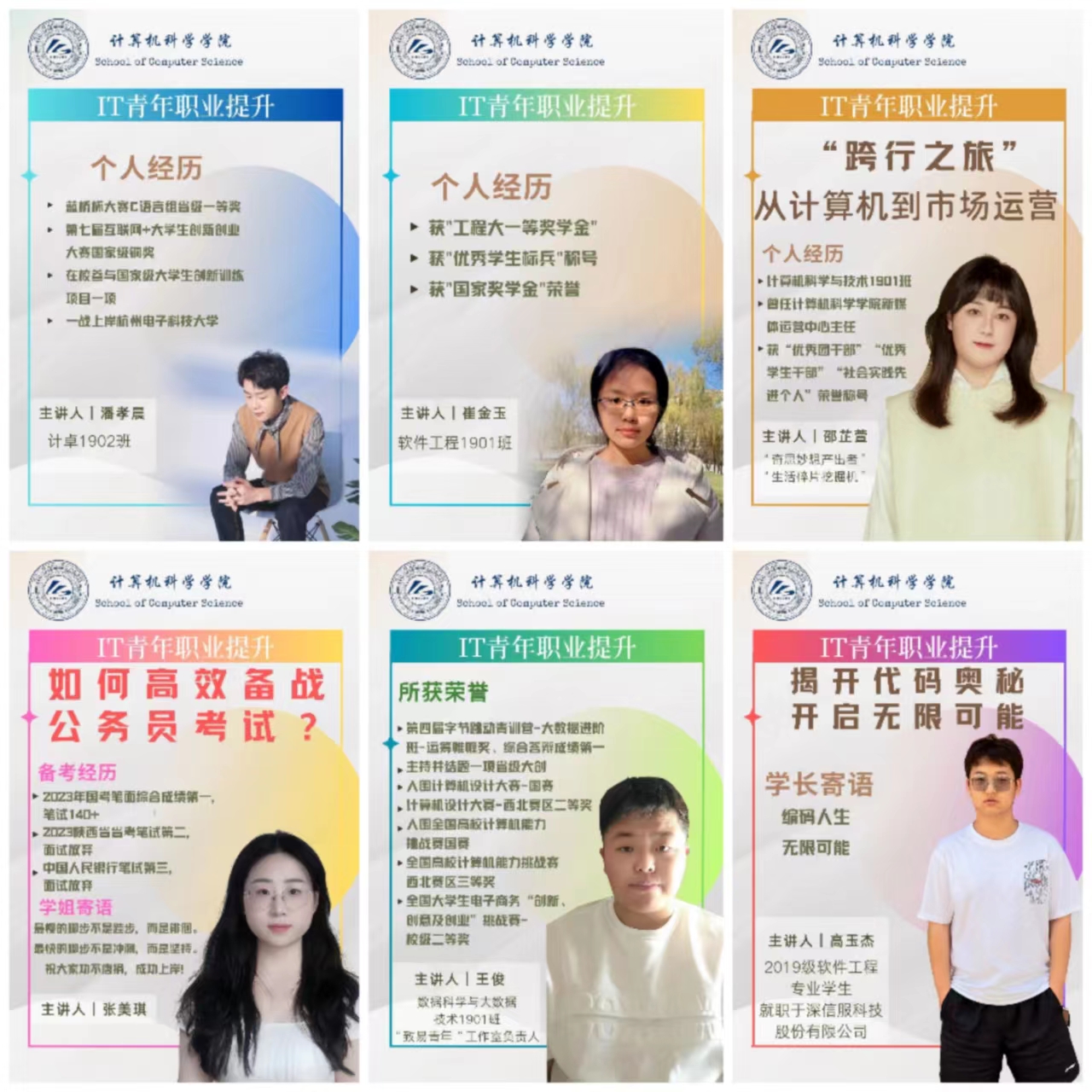 学生中获得各类奖学金的优秀代表进行经验分享,对于营造良好的学风氛围、达到学生间相互促进共同成长的目的至关重要。近日,经过前期认真准备,best365官方网站登录入口2023年“IT青年”宣讲团正式成立。宣讲团邀请了毕业生中成功升学或实现高质量就业的高年级学生担任成员,面向低年级学生分享自身经验,给予低年级同学以更好的建议和更广阔的视野去抉择未来。