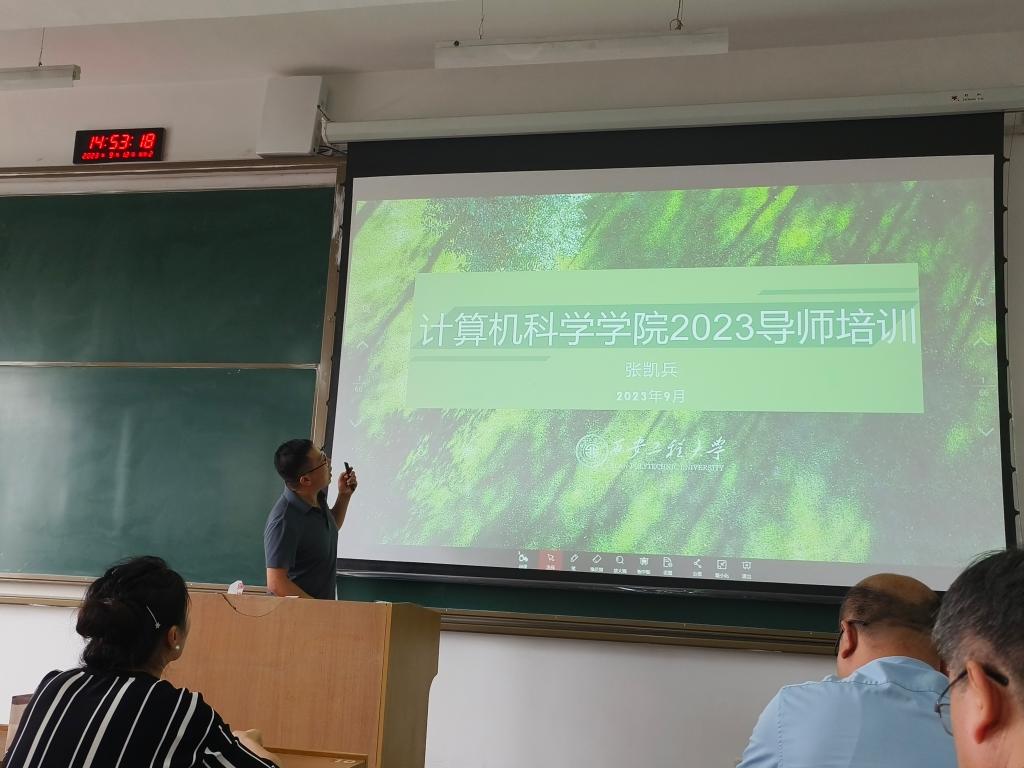 遵守规范、夯实基础,成就精彩学问人生。为了让新生知晓学院研究生培养方案,尽快融入导师团队,同时也作为对导师的一次业务培训,9月12日14:30,学院在临潼校区A-330教室举行了研究生师生见面会暨研究生培养培训会。学院副院长张凯兵、副书记赵勇进、研究生秘书孟雅蕾、研究生导师以及2023级研究生参加了会议。张凯兵向同学们详细介绍了我院研究生的培养模式,包括管理模式、学分制度、毕业要求、学位申请流程等。他希望导师认真阅读新版培养方案,熟悉其中的要点,按照方案规范研究生培养,提升研究生培养质量。针对研究生,他要求同学们及时调整状态,树立学习科研目标,严格遵守学术规范,做好未来三年的学习科研规划。孟雅蕾向同学们详细解读了学院研究生培养过程,对课程、开题、中期检查、盲审、答辩等需要注意的环节做了重点说明。赵勇进从“提升科研成果质量促就业、提高防范意识保安全、重视文明礼仪强素质”等三个方面向学生提了要求。
