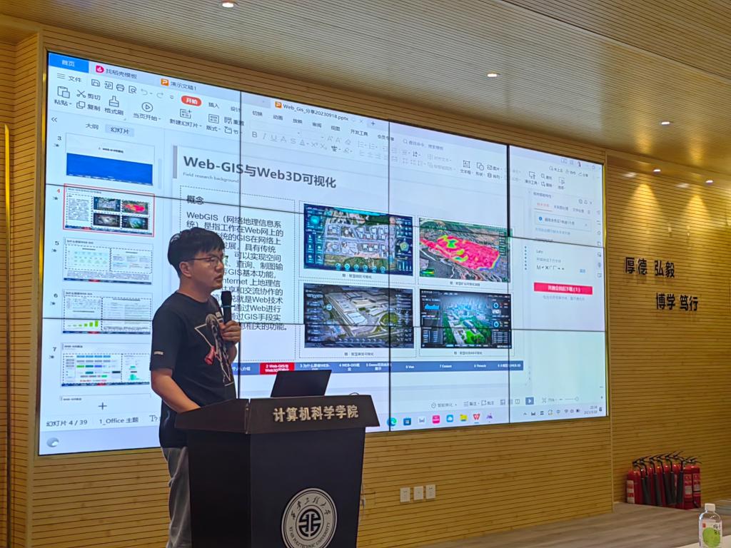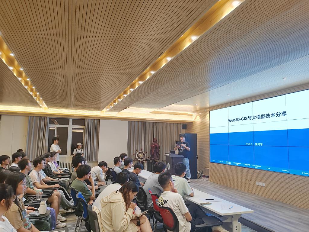 焦瑞博士以“Web3D-GIS与大模型技术分享”为题,针对如今高速发展的“大模型系统”暨人工智能行业进行详细介绍。他指出现今的“大模型系统”在不断完善,已可以完成基本的项目前端与后端工作,可预见在未来十年内的时间里,计算机行业将会迎来一次大的变革。这次变革可以说是既是机遇也是挑战,对于那些善于学习,不断创新的人才来说,“大模型系统”就是第二个辅助脑,帮助他们不断学习新的知识,并扩充其资源储备,而对于不思进取、固步自封的人来说,则会被这大势的洪流所淘汰。他勉励同学们要跟紧时代最前沿的知识,提高自己的能力。