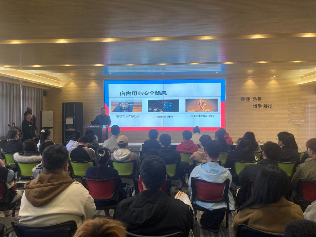 视频结束之后,院党委副书记赵勇进讲话。他指出,近些年高校火灾事件频发,很大程度上是同学们麻痹大意,消防安全意识淡薄所致。学生宿舍作为大家校园生活的重要场所,潜藏着诸多消防安全隐患。要求大家一定要从自身做起,将安全意识常记心间,做到防范于未然,把安全隐患扼杀在萌芽中。
