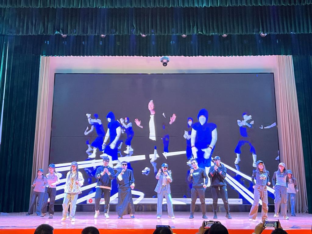 随后,精彩纷呈的win艺之巅12.0晚会在洋溢青春气息的开场舞中开始。由学生自导自演的相声、舞蹈、对唱、合唱、独唱等精彩节目轮番上演,特别是2023级辅导员曹子凡和学生一起出演的歌舞节目《handclap》把现场氛围推向了高潮。