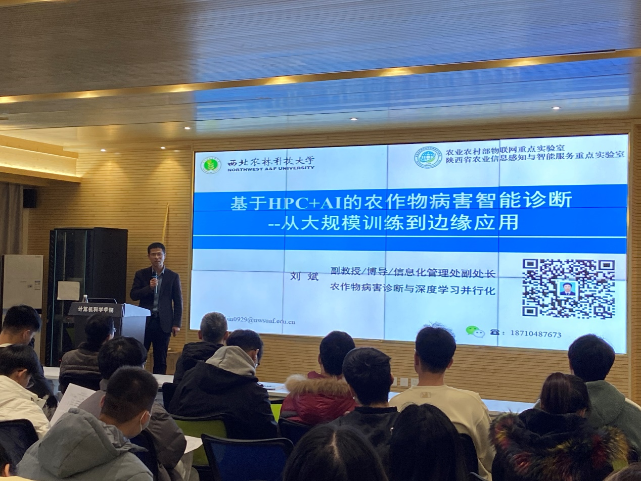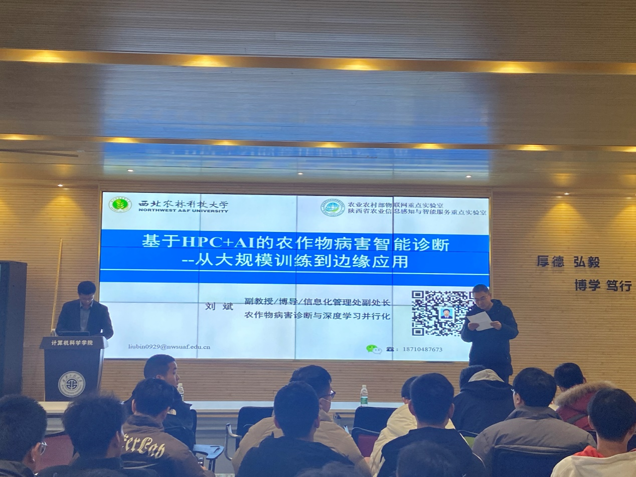 为拓宽研究生学术视野,活跃学术氛围,提升研究生的科研创新能力和综合素质,2023年12月13日14时30分,best365官方网站登录入口在计算机楼614报告厅举办第十九期经纬学术沙龙暨2023年研究生“极客论坛”第十期学术讲座活动。西北农林科技大学数据科学系主任、博士生导师刘斌副教授应邀做题为“基于HPC+AI的农作物病害智能诊断——从大规模训练到边缘应用”的学术报告。学术报告会由best365官方网站登录入口院长薛涛教授主持,best365官方网站登录入口100余名师生参加了报告会。