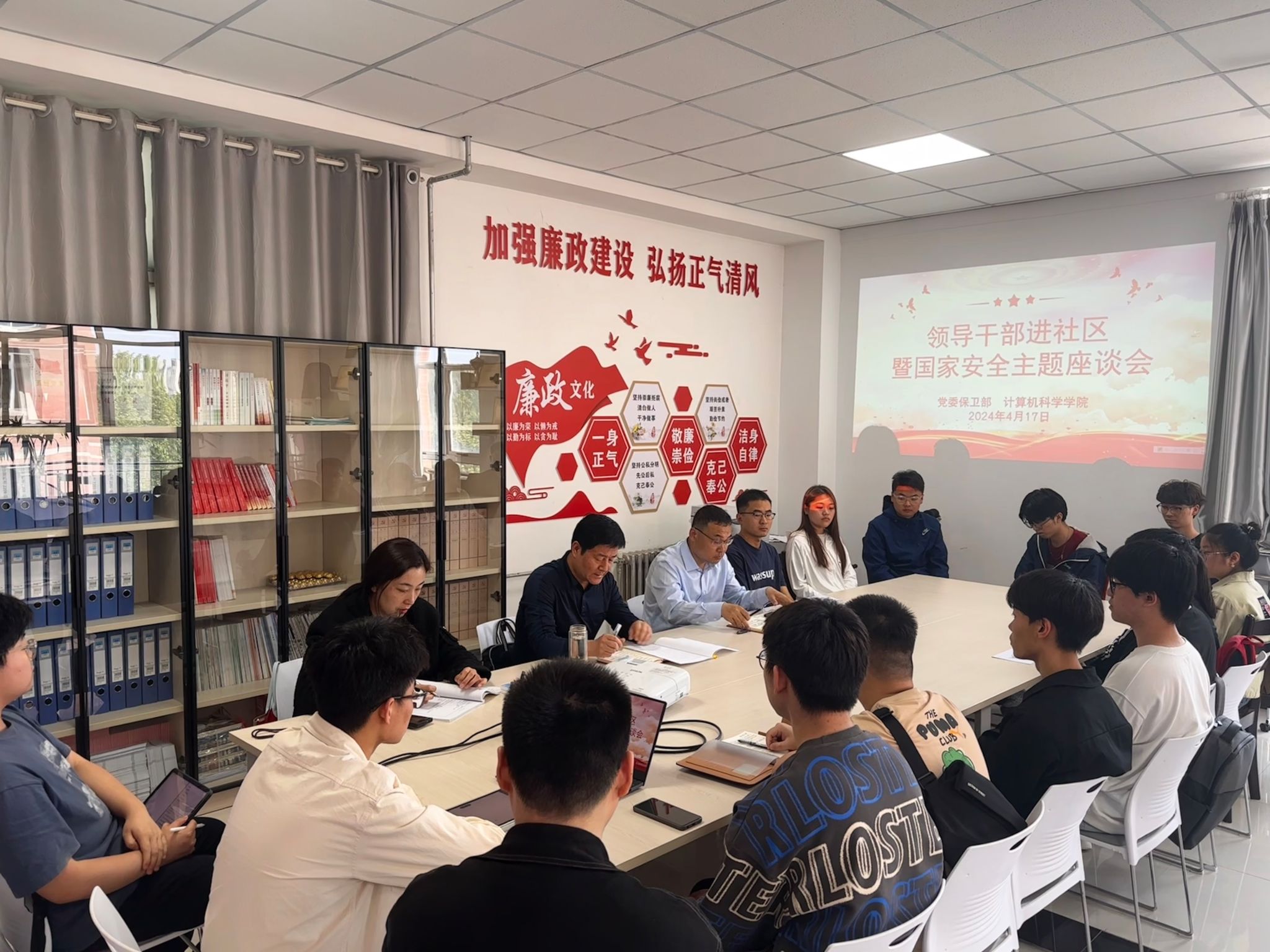 4月17日,校党委保卫部部长潘光辉、政保科副科长闫红洁赴best365官方网站登录入口IT青年成长空间“一站式”学生社区联系功能性党支部开展领导干部进社区暨国家安全主题座谈会活动。计算机学院党委副书记兼学生社区功能性党支部书记赵勇进、学院组织员兼学生社区功能性党支部副书记朱成功及16名学生党员参加了座谈会。座谈会由赵勇进主持。