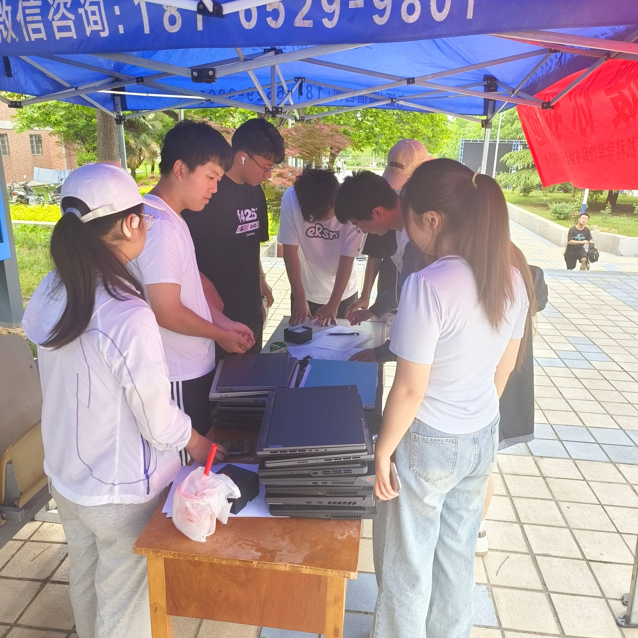 活动现场,青年志愿者们根据各自分工有条不紊地展开工作。他们有的负责接待咨询,有的负责电子设备故障诊断,有的负责维修调试,场面显得繁忙而有序,前来咨询和维修设备的同学们络绎不绝,他们对志愿者们的辛苦付出和熟练的技艺表示赞许。