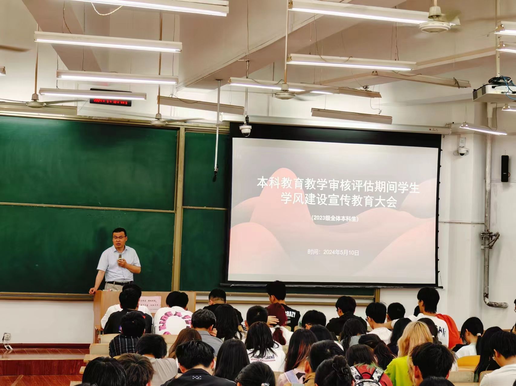 为持续强化“以评促建”,巩固学风建设成绩,助力推进best365官网本科教育教学审核评估迎评准备工作,5月6日—11日,best365官方网站登录入口分年级召开本科教育教学审核评估学风建设宣传教育大会,会议由各年级辅导员主持,学院党委副书记赵勇进做宣传动员。