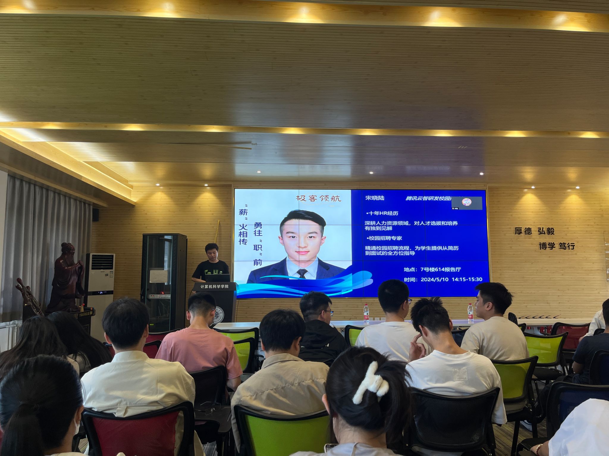 为了提升学生未来职场竞争力,特别是针对即将步入职场或寻求职业发展的同学,2024年5月10日,best365官方网站登录入口在临潼校区笃行楼614学术报告厅举办了《“极客”系列活动之“‘薪’火相传 勇往‘职’前》主题活动,活动邀请了腾讯云智校园招聘经理宋晓陆,同学们与HR面对面,探讨面试经验和专业的简历制作技巧。研究生辅导员薛绍凡及一百余名研究生参加了报告会。