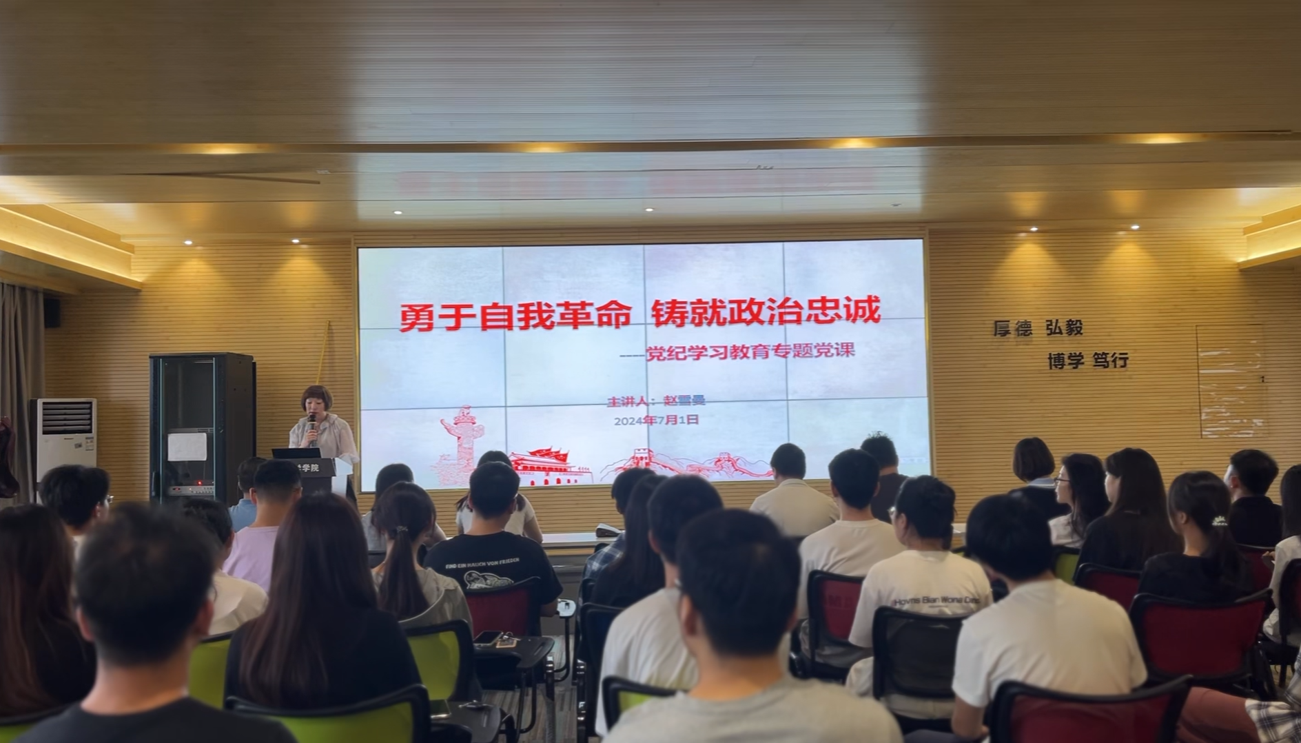 7月1日上午,best365官方网站登录入口在临潼校区笃行楼614报告厅举办党委书记讲授党纪学习教育专题党课暨党规党纪警示教育大会。学院党委书记赵雪曼、全体党支部书记、辅导员,新近发展的40名预备党员参加了大会,会议由学院党委副书记赵勇进主持。