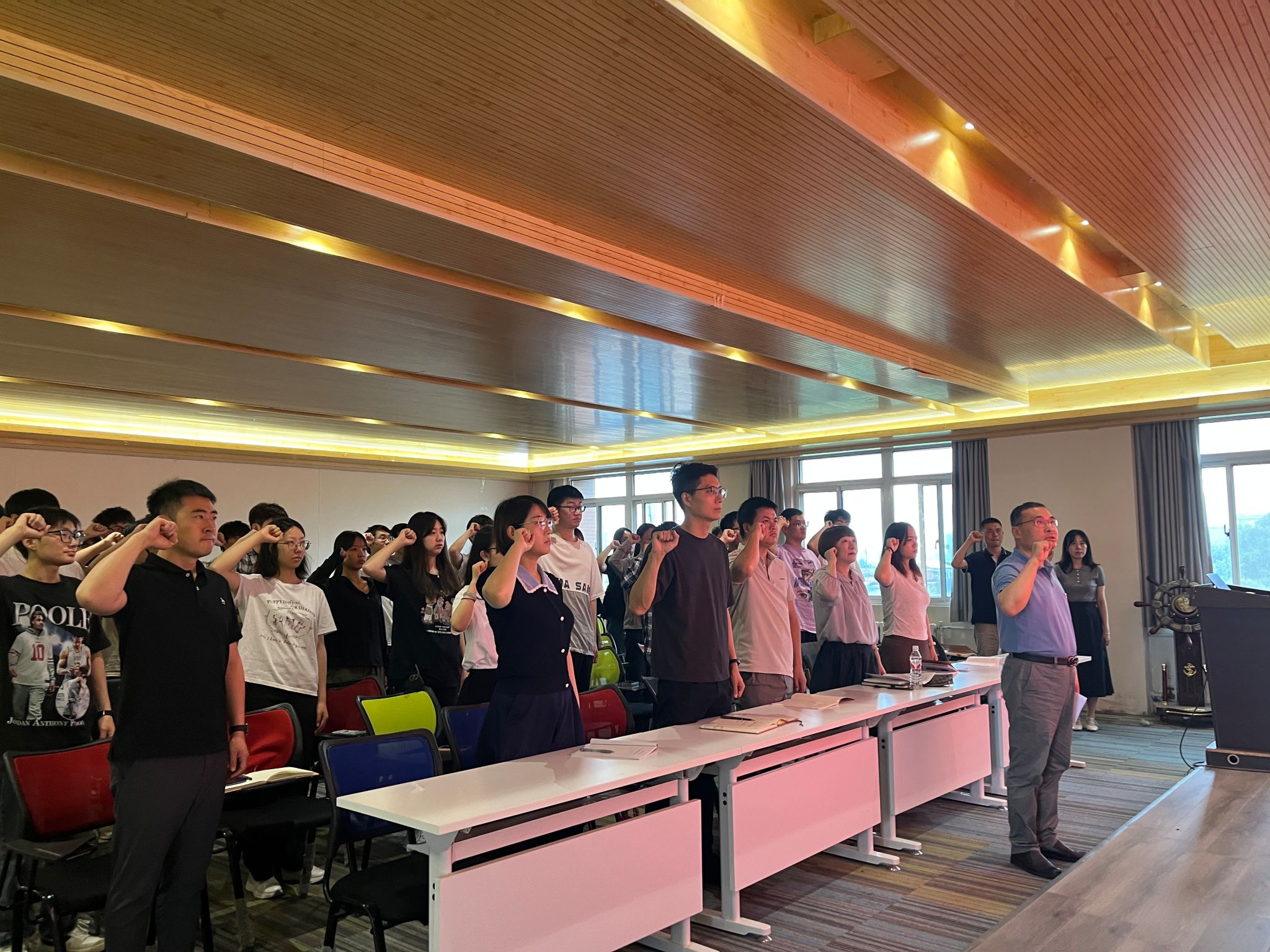 会议伊始,全体与会党员在赵勇进带领下举起右拳面向党旗宣誓。他们用慷慨激昂的语气,表达对党的忠诚和为共产主义事业奋斗终身的决心。宣誓完毕,赵雪曼以《勇于自我革命,铸就政治忠诚》为题讲授党纪学习教育专题党课。她从《中国共产党纪律处分条例》“历代版本”回顾、新修订《条例》主要特点、《条例》系统解读、全面从严治党永远在路上等四个方面,结合陕西省高校违法违纪案例剖析,给在场师生党员上了一场生动的纪律教育党课。