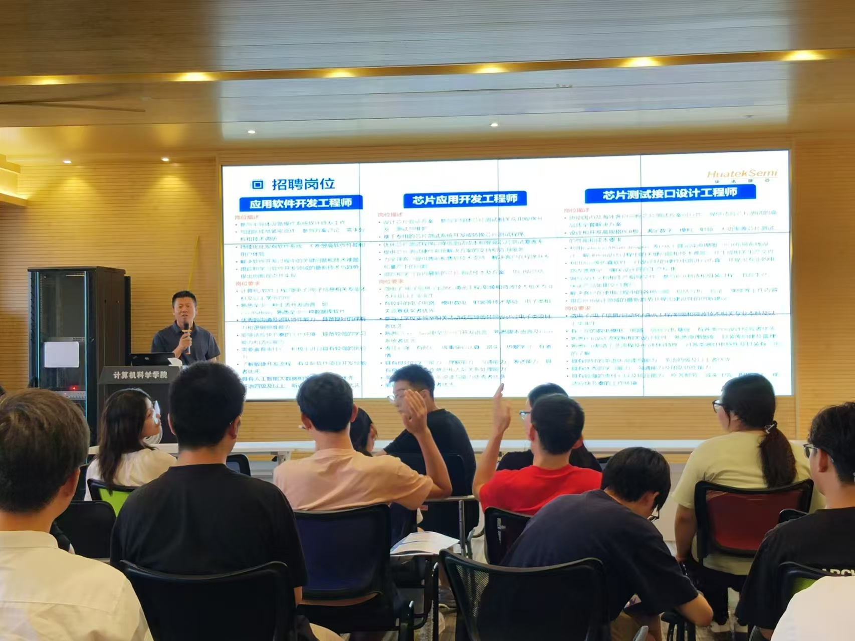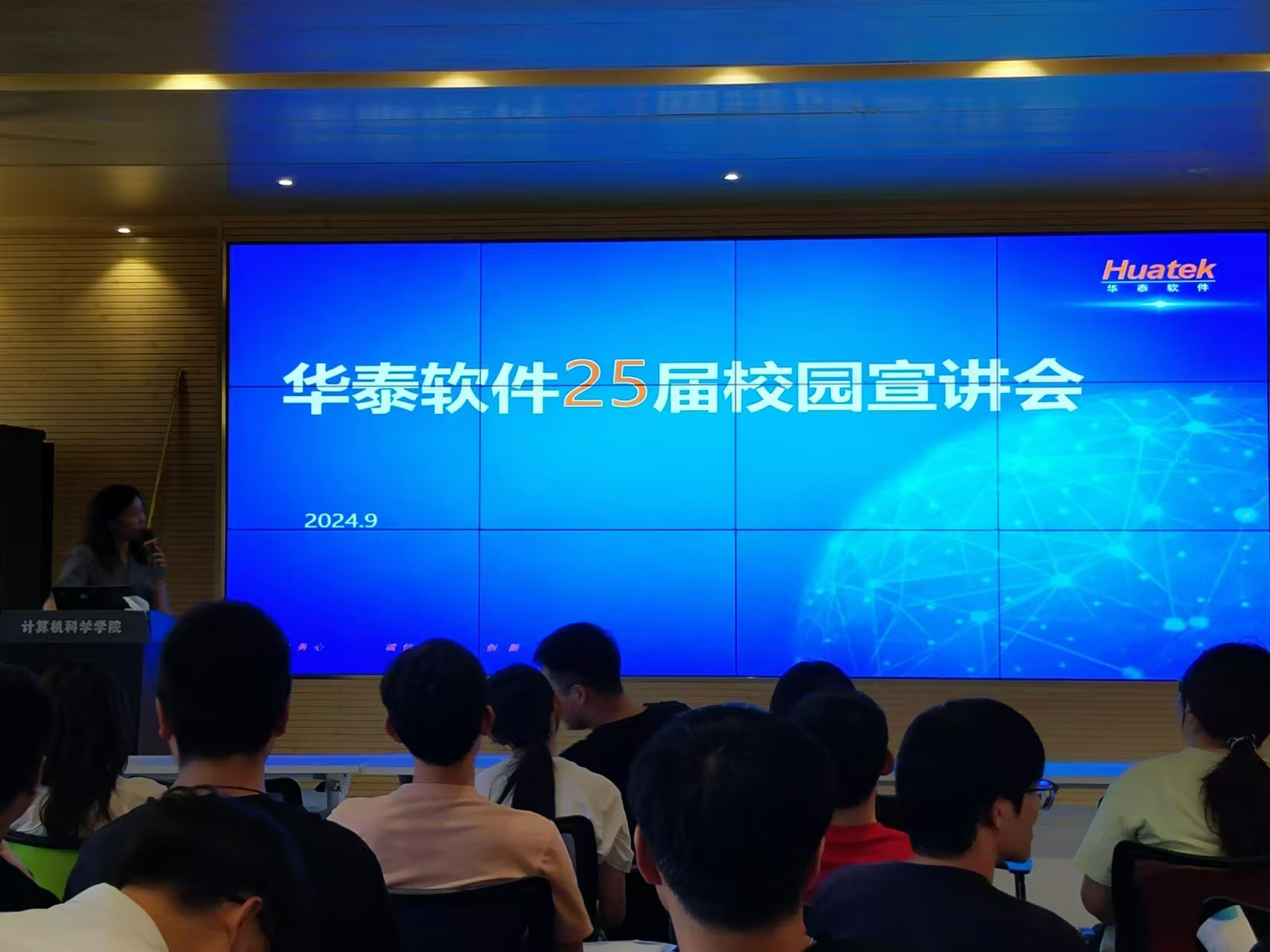 宣讲会伊始,华泰软件的人力资源负责人通过一段精心制作的视频,向在场的学生们介绍了公司的发展历程、业务范围、企业文化以及未来规划。她强调,华泰软件始终秉持“创新、协作、共赢”的企业精神,致力于为员工提供良好的职业发展空间和福利待遇。