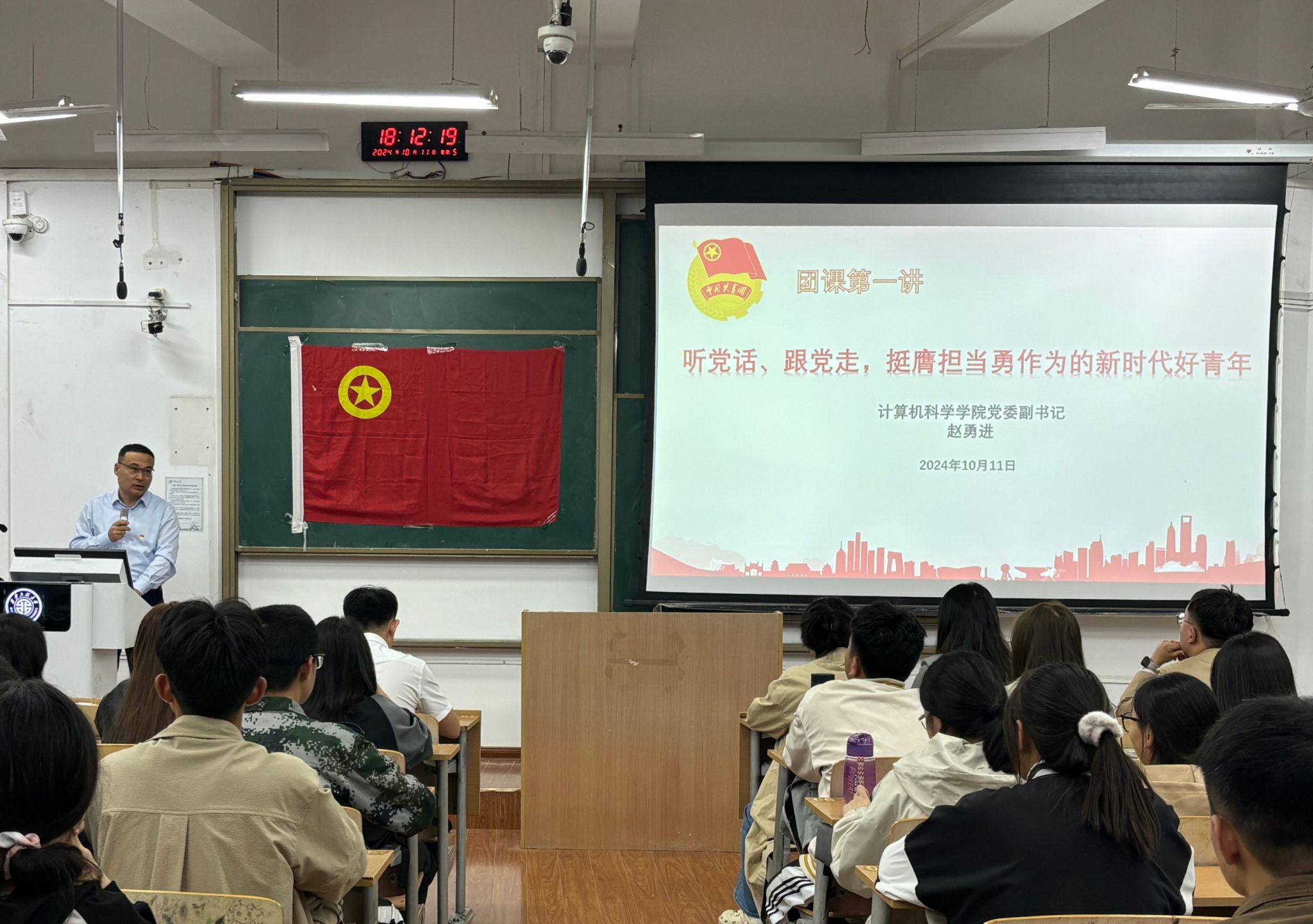 10月11日best365官方网站登录入口举行第十七期(总第38期)团校开班仪式,学院党委副书记赵勇进为学员带来了团校培训第一讲《做听党话、跟党走,挺膺但当勇作为的新时代好青年》。他强调,当今世界正处于百年未有之大变局,我国正处于实现中华民族伟大复兴的关键时期。面对这样的时代背景,我们必须把青年团员培养成挺膺担当,勇于作为,积极投身中国式现代化建设和中华民族复兴的伟大事业的新时代好青年。