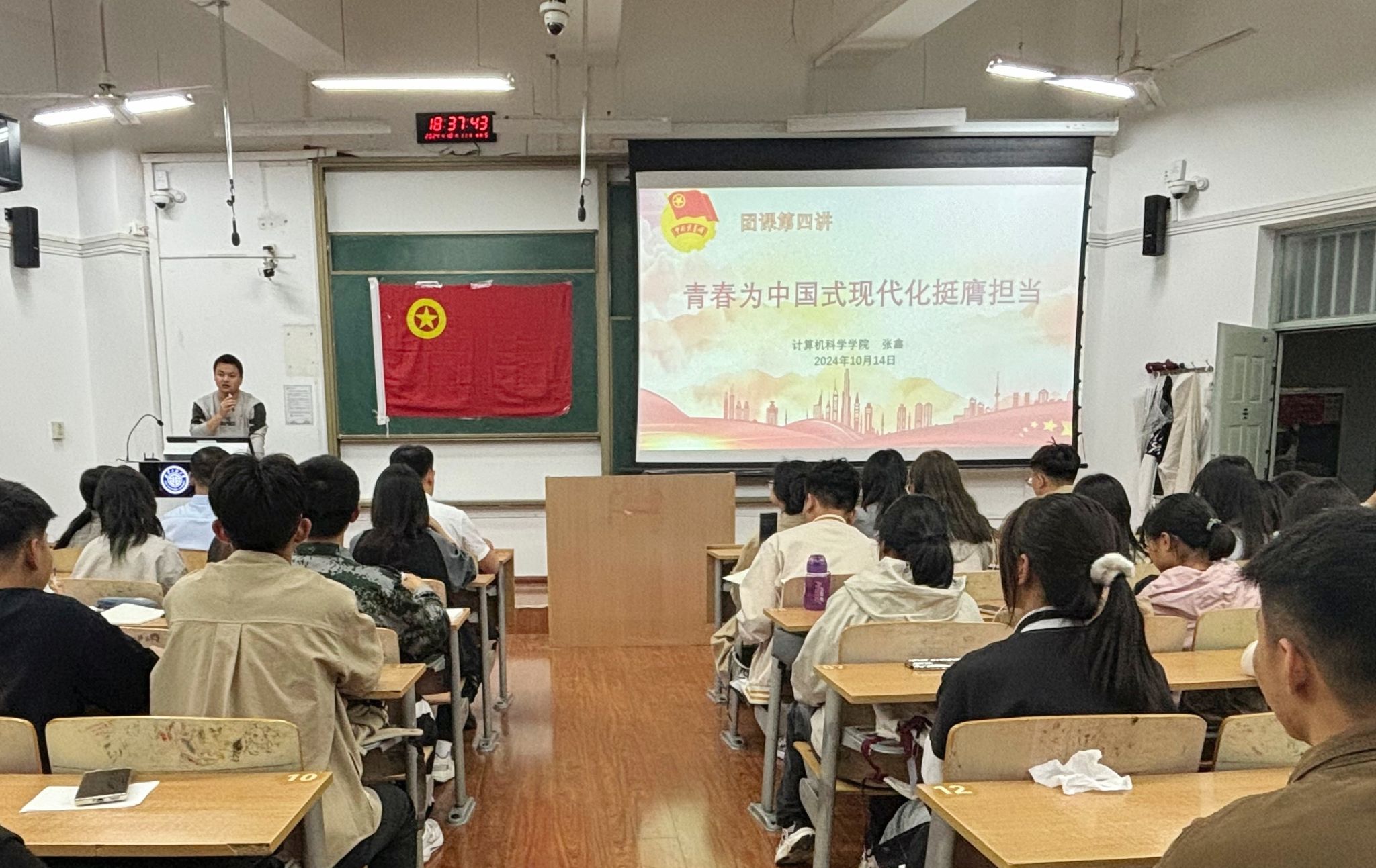 10月14日,学院兼职组织员张鑫以《青春为中国式现代化廷膺担当》为题讲授了第四讲。在讲座中,他深入浅出地阐释了中国式现代化内涵和意义,点明这是符合中国国情、独具中国特色的发展之路。他重点阐述了青年在实现中国式现代化过程中的使命担当,强调不能只喊口号,而是必须要有实际行动。他强调团员青年要在各个领域勇挑重担,奉献担当,用奋斗展现青春的价值。