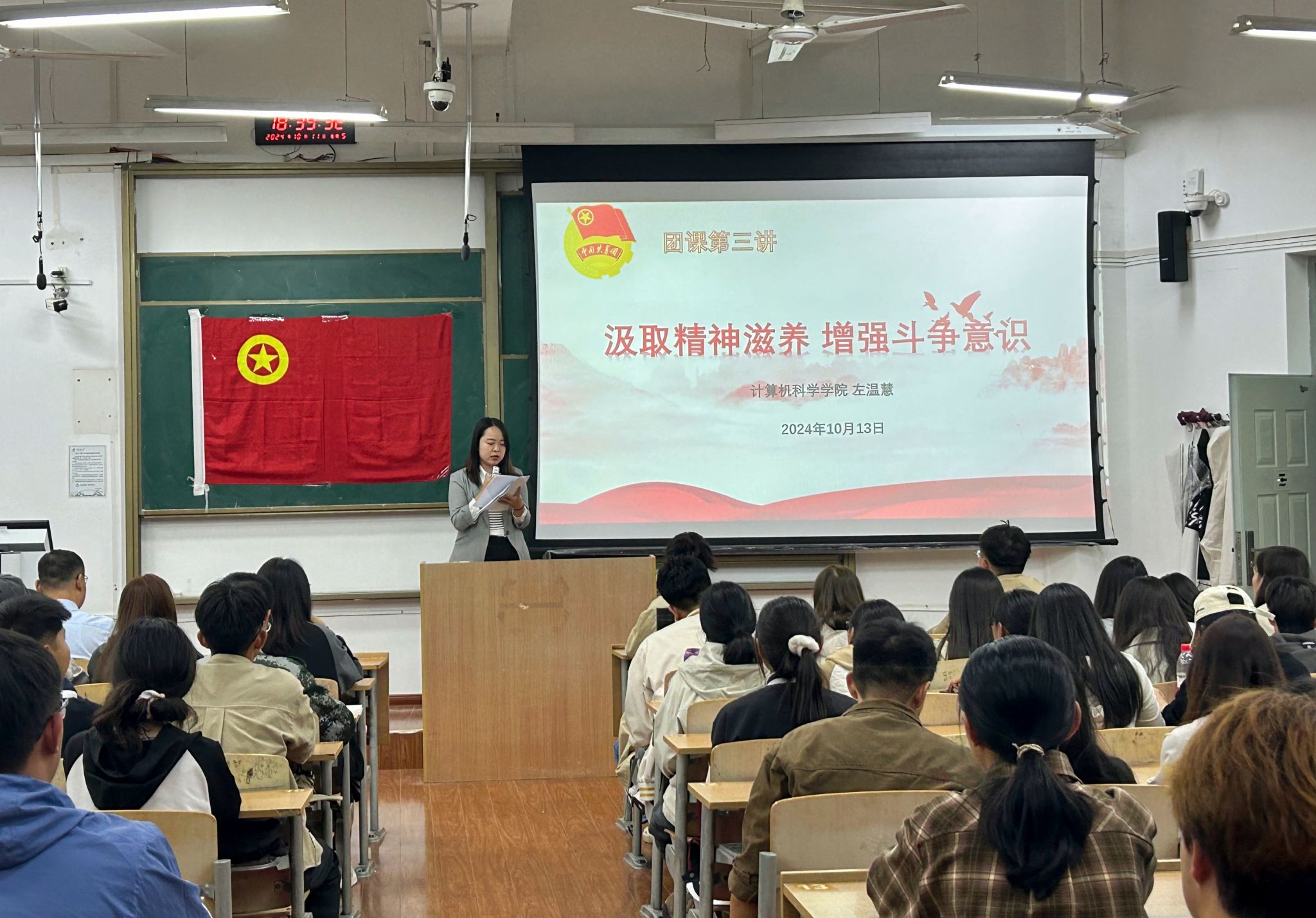 10月12日,学院团委副书记左温慧讲授了第三讲《汲取精神滋养,增强斗争意志》。她以革命先辈在艰难困苦中不屈不挠的奋斗精神为例,引导大家对精神滋养有了具体的认识。她强调青年团员要以合格团员的要求对自身行为进行约束,在思想上和行动上融入团组织。