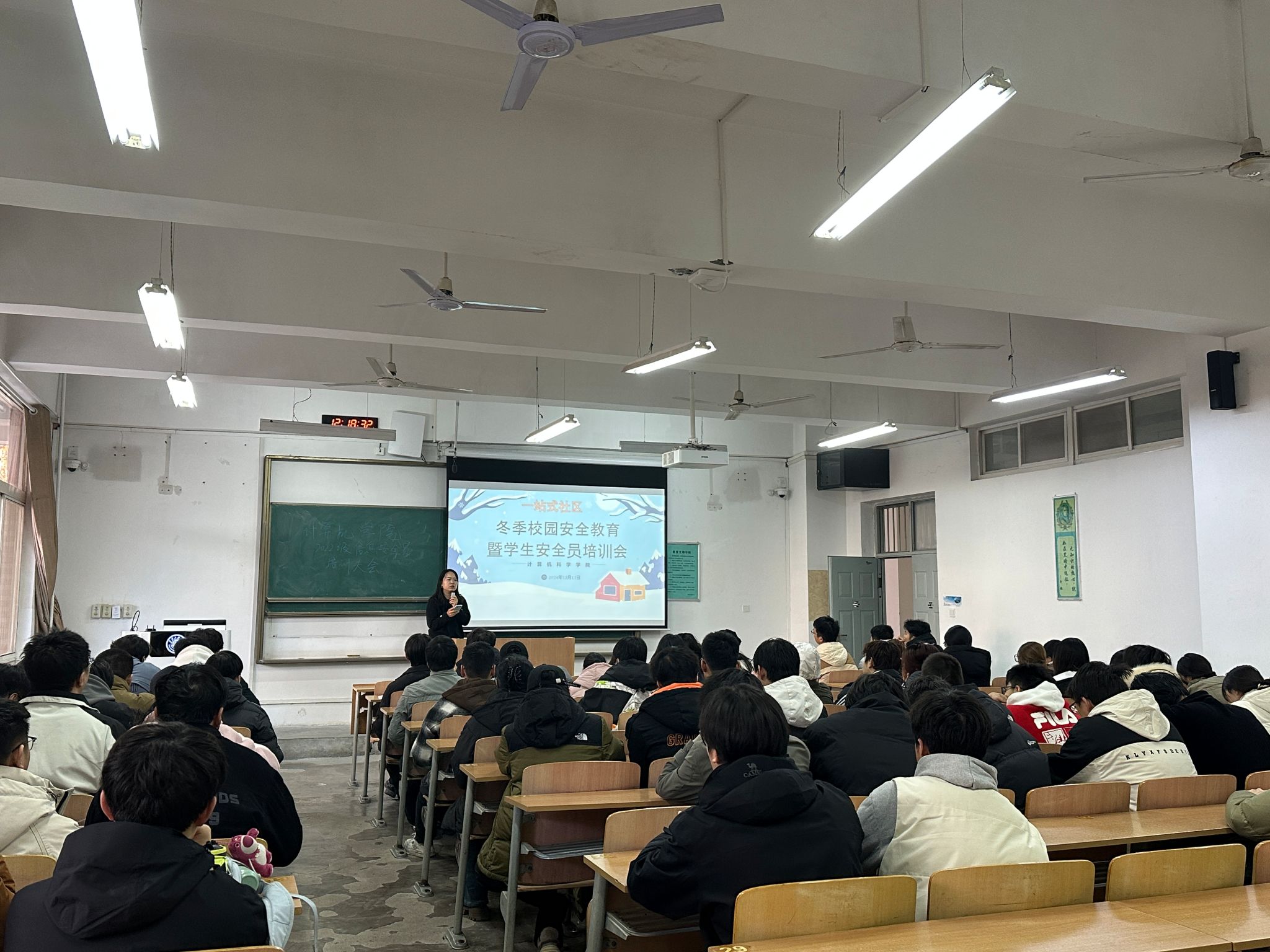 在培训会上,各年级辅导员围绕冬季校园安全薄弱环节和强化薄弱环节的紧迫性向学生安全员做出了详细讲解,并提出了具体要求。本次培训涵盖了生命安全、交友安全、心理安全、财产安全、消防安全、网络安全、交通安全等多个维度,辅导员通过活生生的案例描述、详实的数据分析、相关法律法规和校纪校规的解读,为学生上了一堂深刻实用的安全教育课。在心理健康方面,心理辅导员程帅着重强调了安全员在学生心理健康维护中的重要作用,鼓励同学们主动学习心理健康知识,树立生命最可贵的理念,增强发现问题的敏锐性,勇于向需要帮助的同学伸出援手,遇到风险度较高的问题要第一时间向辅导员报告。各年级辅导员就突发事件的应急处理流程向大家做了详尽讲解,特别提醒安全员们在面对紧急情况时,要第一时间联系辅导员,保持冷静、迅速反应、有效行动。辅导员还就诚信考试和学生的人际交往等问题和与会学生进行了讨论,并强调了有关注意事项。