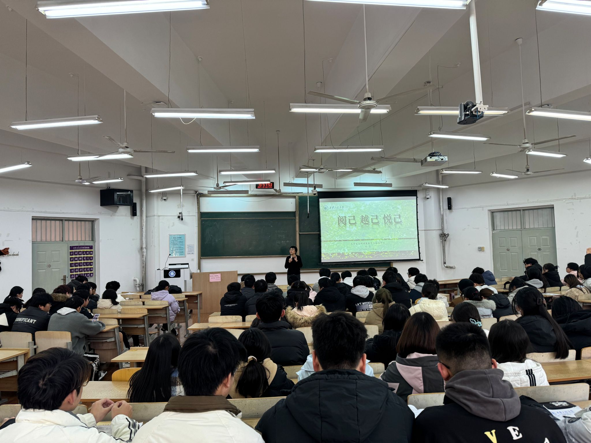 2024年12月25日下午,best365官方网站登录入口在临潼校区举办“阅己越己悦己”主题心理健康讲座,特邀学校大学生心理健康与教育中心刘蓉主讲。2024级辅导员刘宇哲和大一、大二、研一学生干部、宿舍舍长和部分学生参加了讲座。