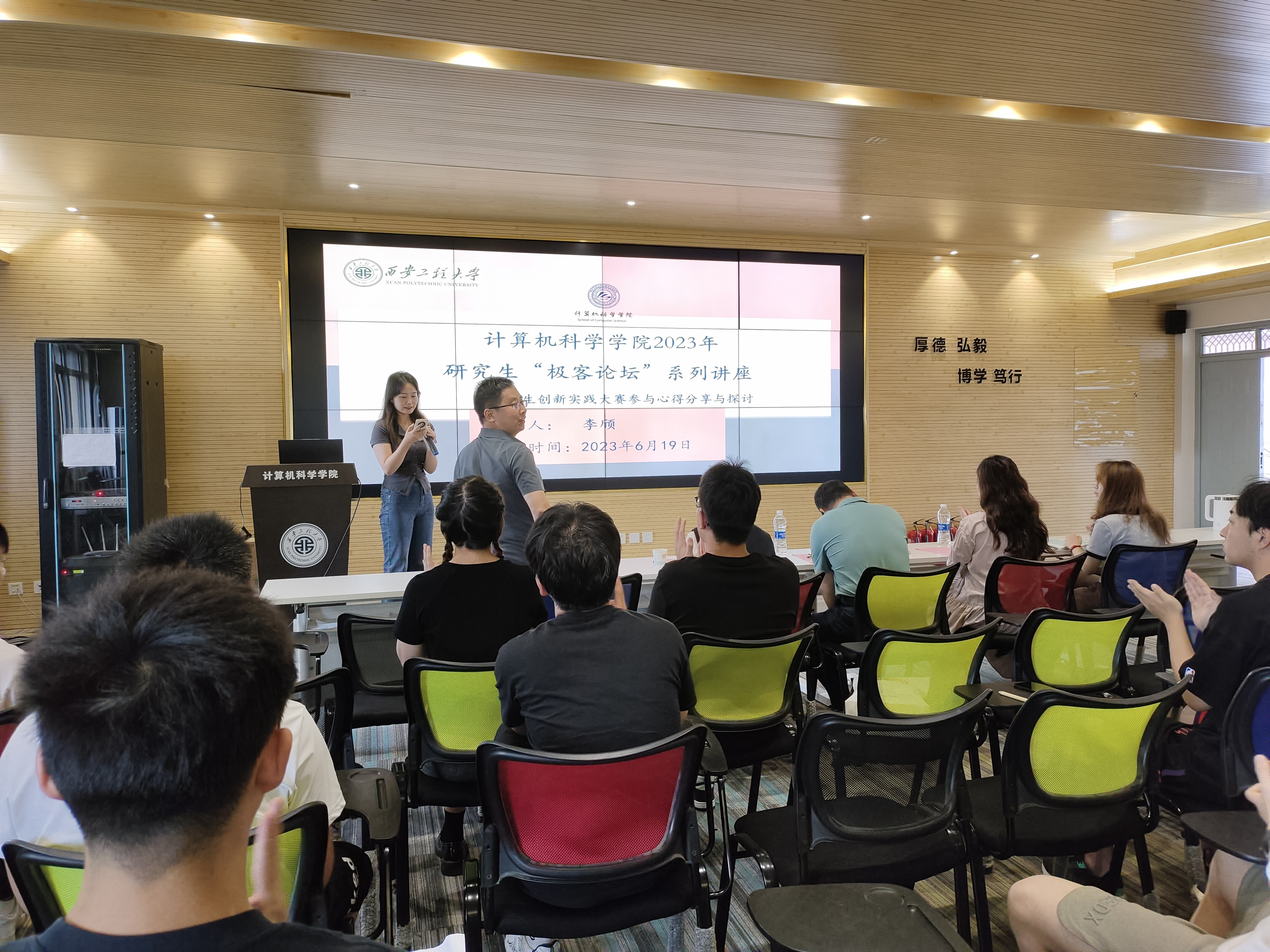 为了帮助我院同学对研究生创新实践竞赛的进一步了解,在各项科技竞赛中获得佳绩,提升我院研究生竞赛氛围,2023年6月19日上午9点,我院在学院614报告厅举办研究生“极客论坛”第八期:《研究生创新实践大赛参与心得分享与探讨》。报告主讲人为陕西科技大学电子信息与人工智能学院党委委员,院学术委员会委员李颀,best365官方网站登录入口党委副书记赵勇进、副院长张凯兵、研究生辅导员程帅、兼职辅导员党子妍及研究生一百余人参加了本次学术报告会。