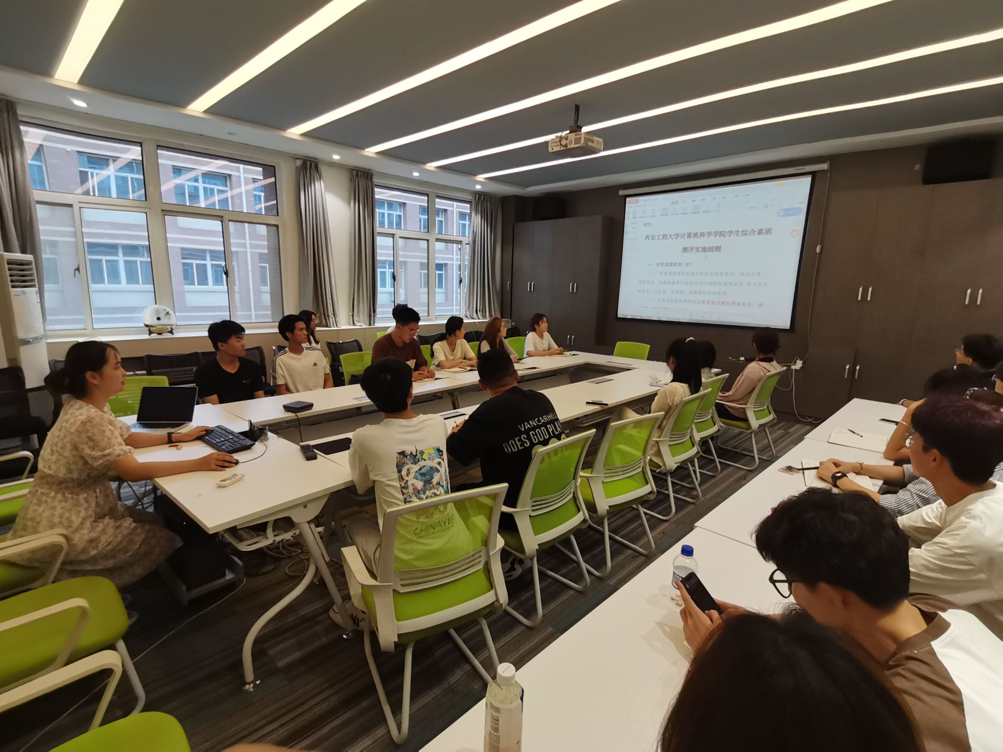 左温慧首先介绍了综合测评工作开展的重要性,从评奖评优的角度引导同学们客观、全面地看待综测工作,并且希望各班班长、团支书做好政策的上传下达工作,热心为同学们解读,积极配合工作开展。她强调,学院对于学生综合测评工作严格遵循《西安工程大学学生综合素质测评实施办法》,并结合best365官方网站登录入口实际制定而来,对于同学们在校期间各方面表现进行公平、公正、公开的测评。
